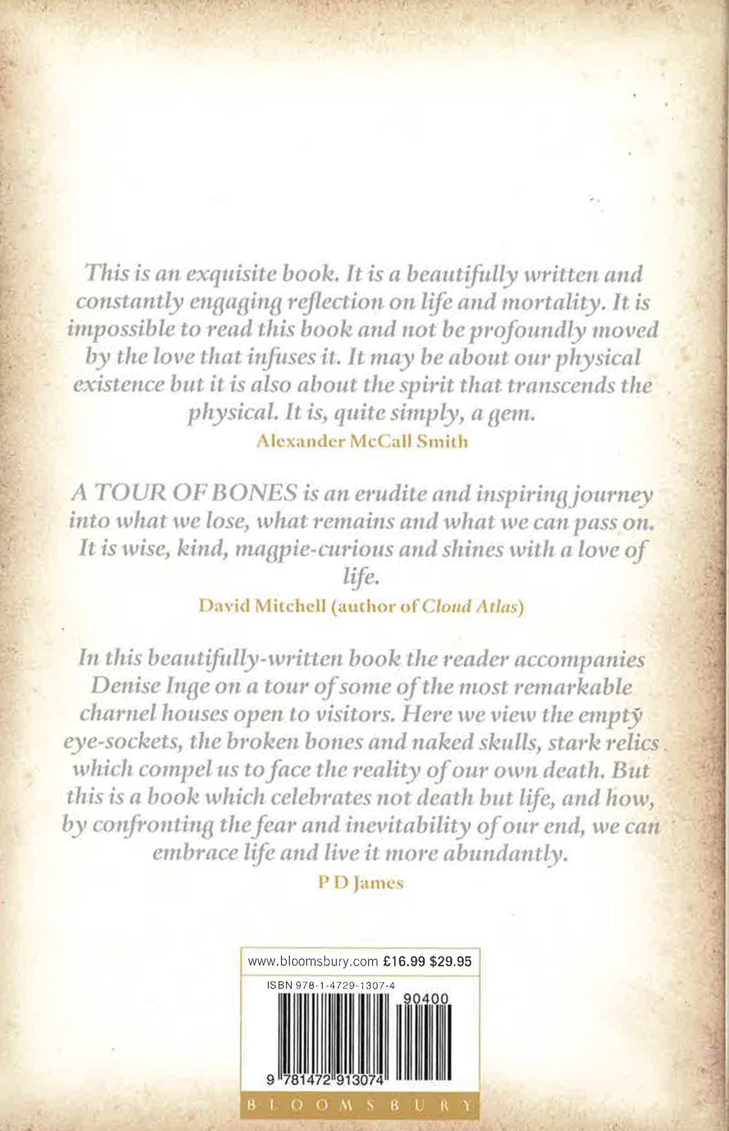 Author, academic and adventurer, Denise Inge grew up in a large and rambunctious family on the east coast of America. She crossed the Sahara, charmed snakes in Marrakech and cycled the Adirondack mountains but her latest adventure is an interior one. It starts with the discovery that her house is built on a crypt full of human skeletons. Facing her fear of these strangers' bones takes her to other charnel houses in Europe and on a journey into the meaning of bones themselves. This exploration, though it began before her diagnosis with an inoperable sarcoma, takes on a new significance when the question of living well in the face of mortality abruptly ceases to be hypothetical. A Tour of Bones is a passionate testament to the conviction that living is more than not dying, and that contemplating mortality is not about being prepared to die but about being prepared to live.