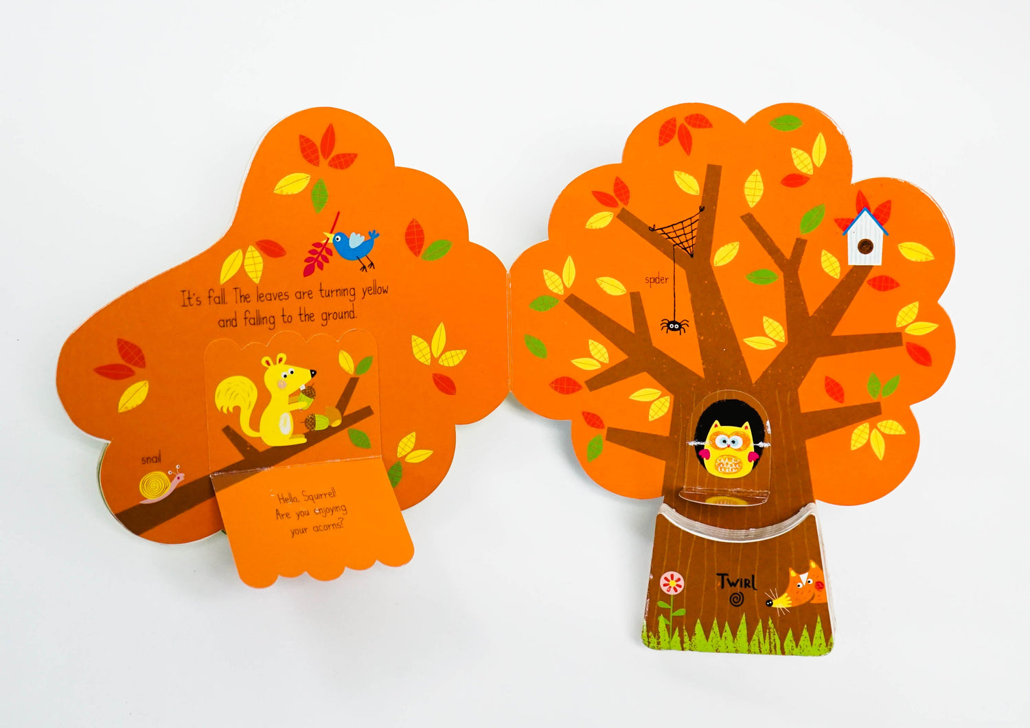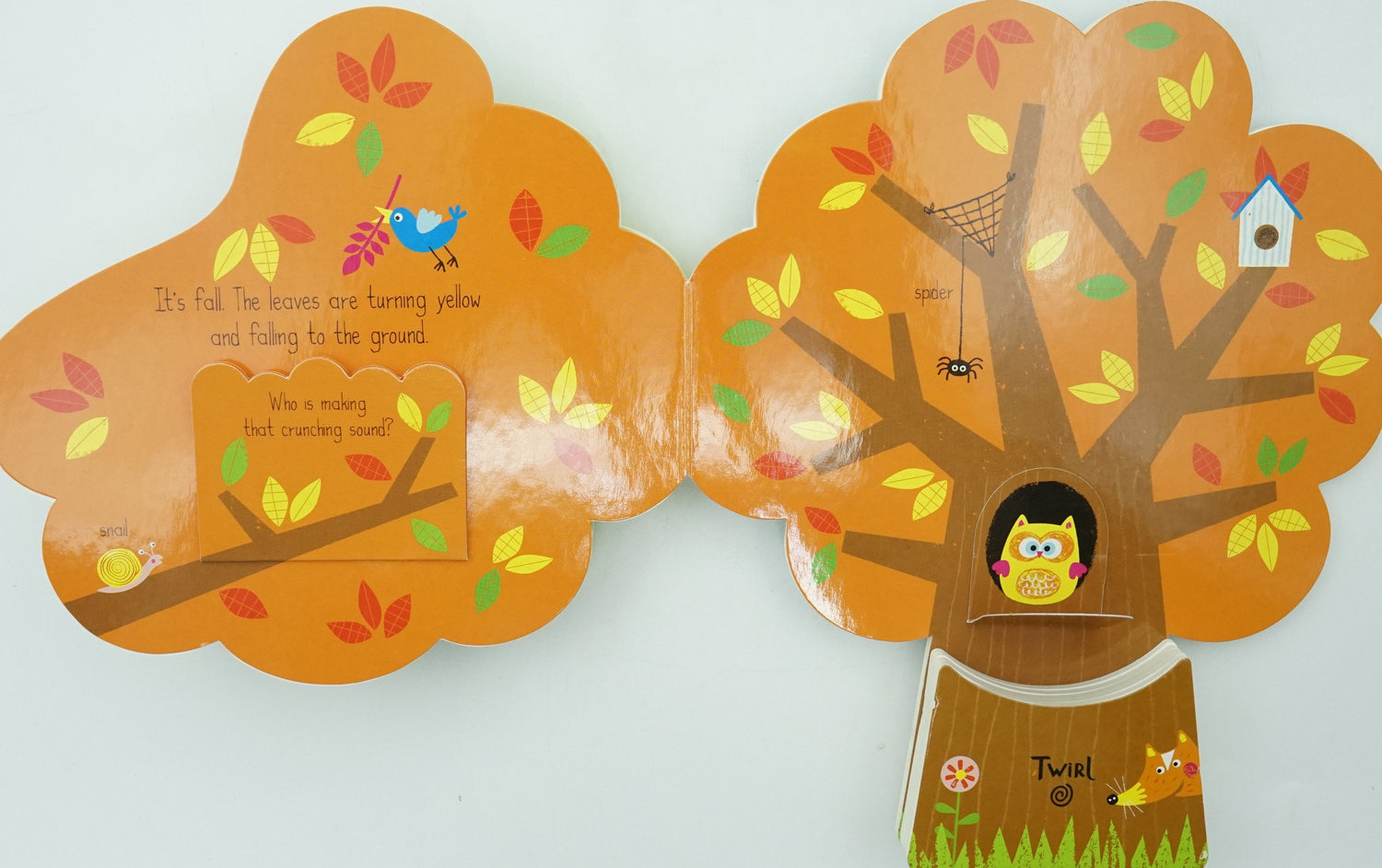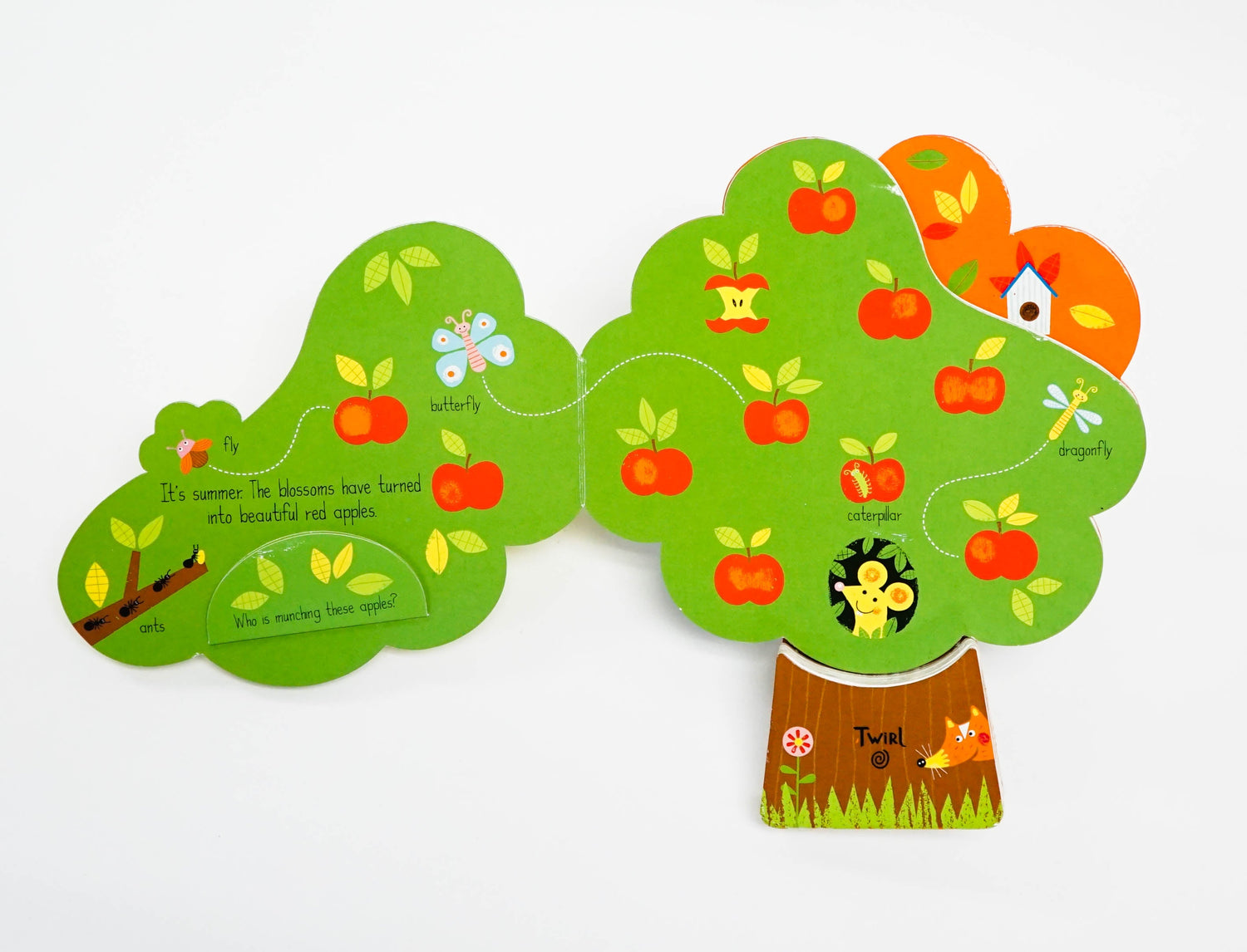 A charming board book for babies and toddlers. Watch as the tree blossoms, fruits, sheds its leaves, and cradles snow. Sturdy lift the flaps feature woodland creatures that make their home in a tree, from owls to bumblebees to squirrels. Each page is bigger than the next as the tree grows all year long.