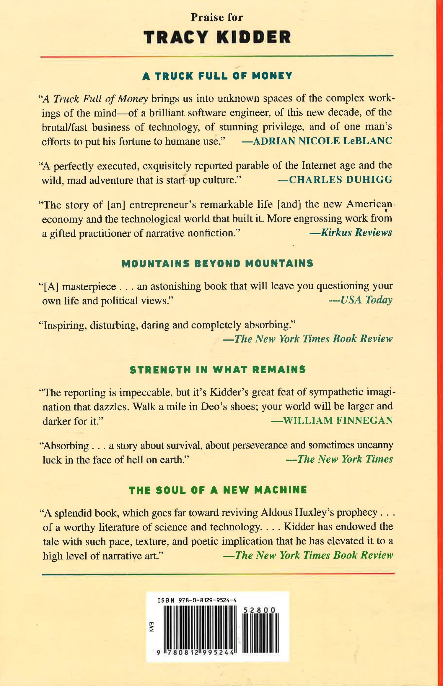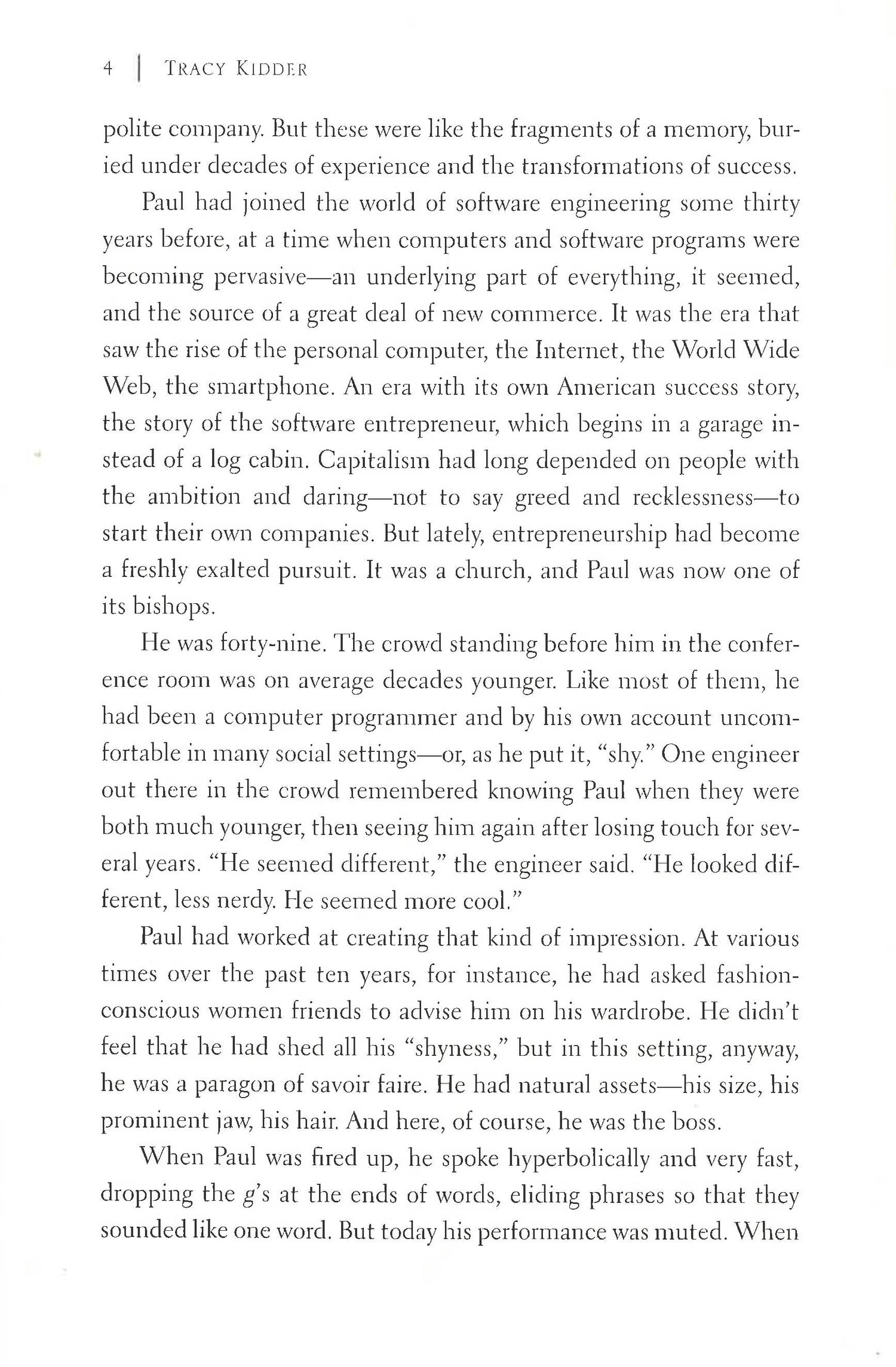 A perfectly executed, exquisitely reported parable of the Internet age and the wild, mad adventure that is start-up culture."Charles Duhigg Fortune, mania, genius, philanthropy the bestselling author of Mountains Beyond Mountains gives us the inspiring story of Paul English, the founder of Kayak.com and Lola. Tracy Kidder, the "master of the nonfiction narrative" (The Baltimore Sun) and author of the bestselling classic The Soul of a New Machine, now tells the story of Paul English, a kinetic and unconventional inventor and entrepreneur, who as a boy rebelled against authority. Growing up in working-class Boston, English discovers a medium for his talents the first time he sees a computer. As a young man, despite suffering from what would eventually be diagnosed as bipolar disorder, he begins his pilgrim's journey through the ups and downs in the brave new world of computers. Relating to the Internet as if it's an extension of his own mind, he discovers that he has a talent for conceiving innovative enterprises and building teams that can develop them, becoming "a Pied Piper" of geeks. His innovative management style, success, and innate sense of fair play inspire intense loyalty. Early on, one colleague observes: "Someday this boy's going to get hit by a truck full of money, and I'm going to be standing beside him." Yet when English does indeed make a fortune, when the travel website Kayak is sold for almost two billion dollars--the first thing he thinks about is how to give the money away: "What else would you do with it?" The second thing he thinks is, What's next? With the power of a consummate storyteller, Tracy Kidder casts a fresh, critical, and often humorous eye on the way new ideas and new money are reshaping our culture and the world. "A Truck Full of Money" is a mesmerizing portrait of an irresistibly endearing man who is indefatigable, original, and as unpredictable as America itself. Praise for A Truck Full of Money "Kidder's prose glides with a figure skater's ease, but without the glam. His is a seemingly artless art, like John McPhee's, that conceals itself in sentences that are necessary, economical, and unpretentious."The Boston Globe "Kidder's portrayal of living with manic depression is as nuanced and intimate as a reader might ever expect to get.You can't help admiring Mr. English and cheering for him."The New York Times "[A] powerful and insightful tale that makes the Internet era entertaining, and defines English as an endearing, generous and eccentric geek."USA Today "At times, the narrative of the young technologist, at least in Kidder's hands, seems the modern equivalent of the story of the godless wayfarer who stumbles into a cathedral in a distant city, only to find that its vaulting arches and organ music bring on exaltations of mind and spirit."--The New York Times Book Review "What kind of entrepreneur talks about making money as if it's, well, kind of a bummer? You'll ask yourself that question about a dozen or so pages into A Truck Full of Money, Tracy Kidder's expertly reported, deftly written new book that tracks the rise of unconventional software executive and Kayak.com co-founder Paul English."--The San Francisco Chronicle "Kidder writes beautifully, creating an engaging storyline while avoiding cliches and pretention. *This book may have remainder mark*