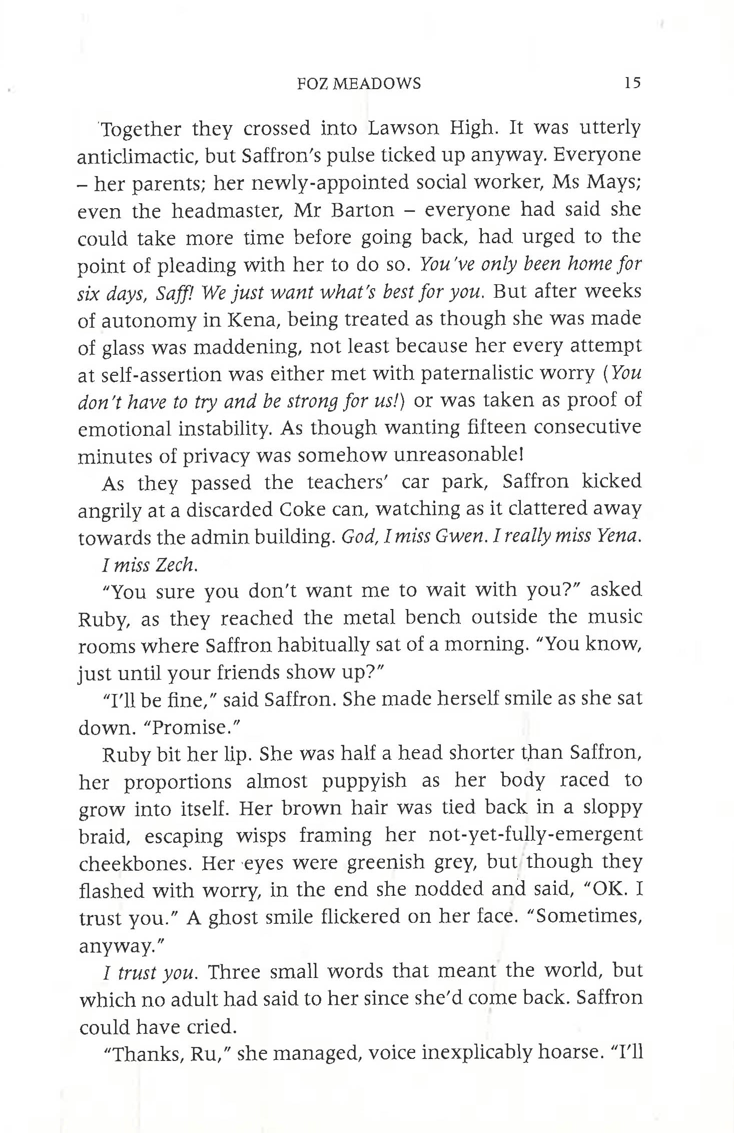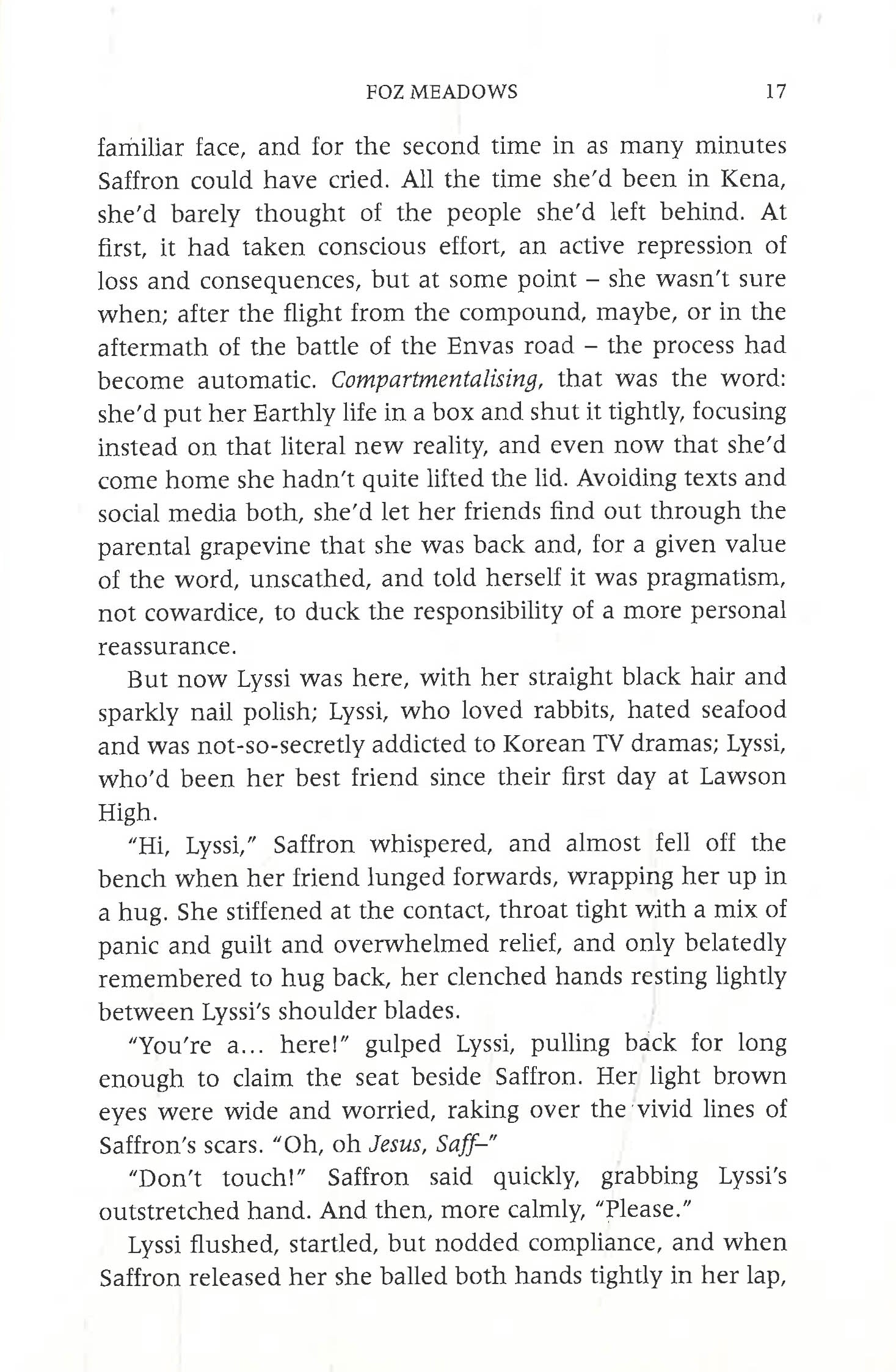 Saffron Coulter has returned from the fantasy kingdom of Kena. Threatened with a stay in psychiatric care, Saffron has to make a choice: to forget about Kena and fit back into the life she’s outgrown—or pit herself against everything she’s ever known and everyone she loves.