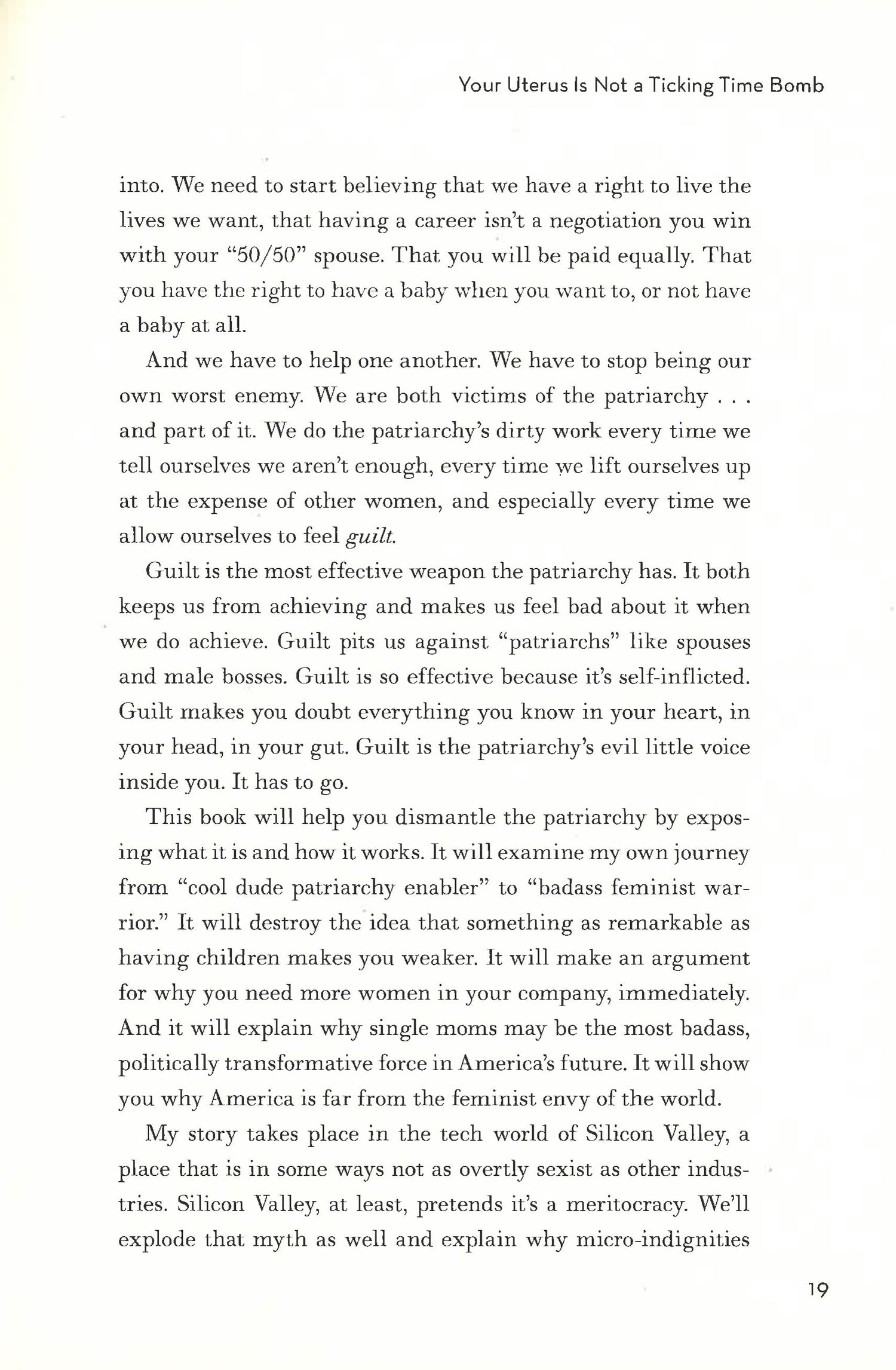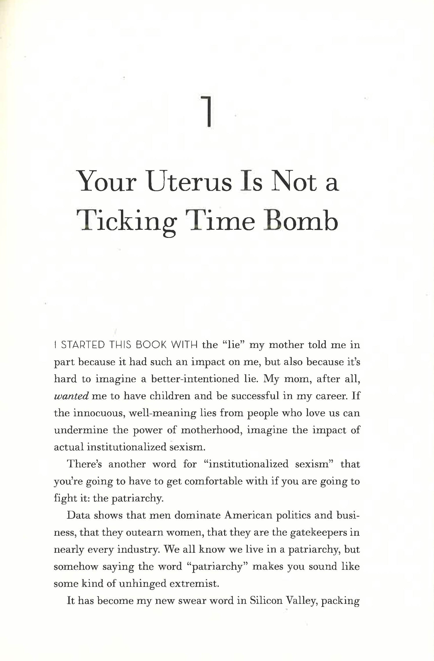 Forty percent of Silicon Valley women said they felt the need to speak less about their family to be taken more seriously. Many have been told that having a second child would cost them a promotion. Fortunately, this prejudice is slowly giving way to new attitudes, thanks to more women starting their own businesses, and companies like Netflix, Facebook, Apple, and Google implementing more parent-friendly policies. But the most important barrier to change isn't about men. Women must rethink the way they see themselves after giving birth. As entrepreneur Sarah Lacy makes clear in this cogent, persuasive analysis and clarion cry, the strongest, most lucrative, and most ambitious time of a woman's career may easily be after she sees a plus sign on a pregnancy test.