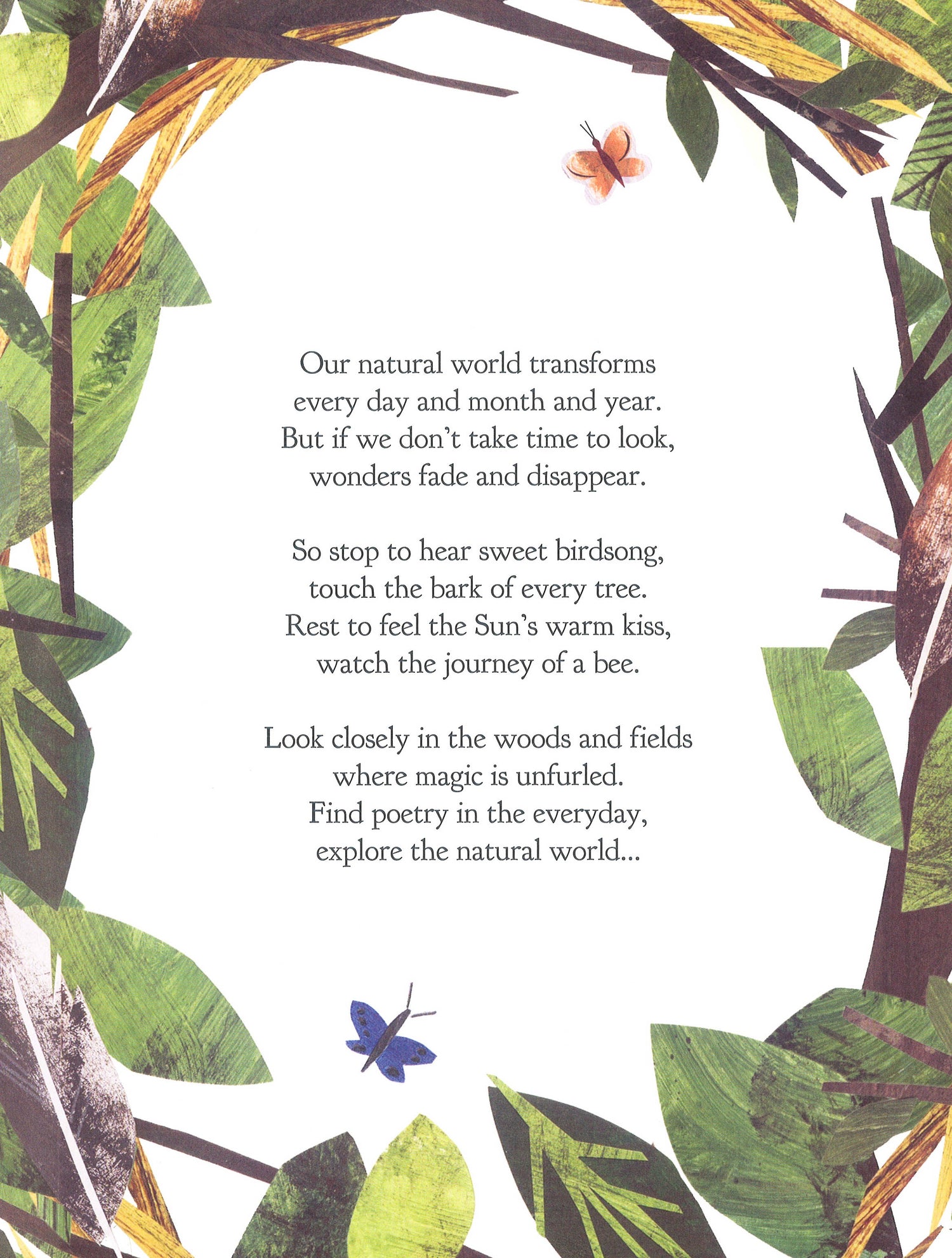 A first book of nature that encourages young readers to pause and notice when flowers bloom, discover why leaves change colour and learn how birds build intricate nests.