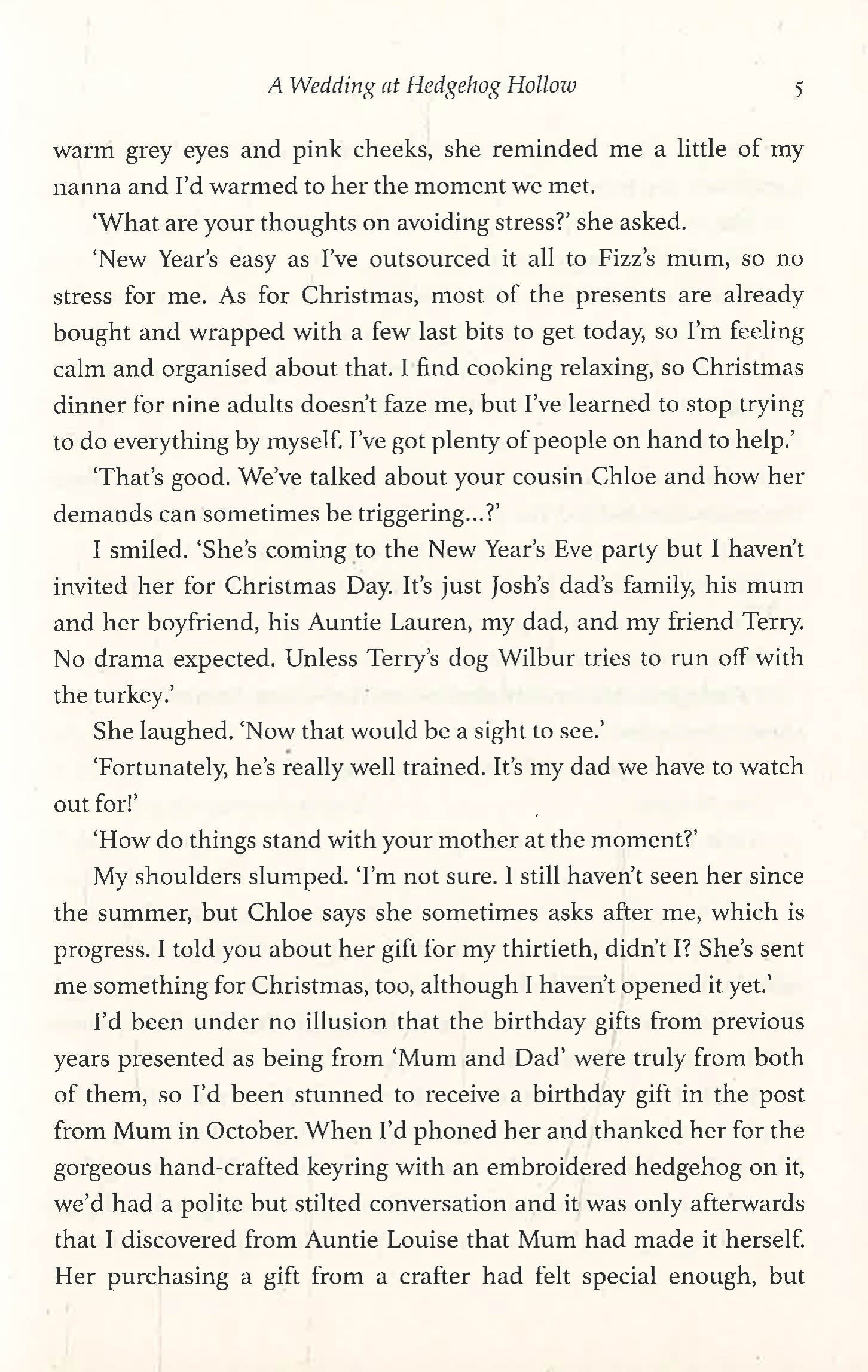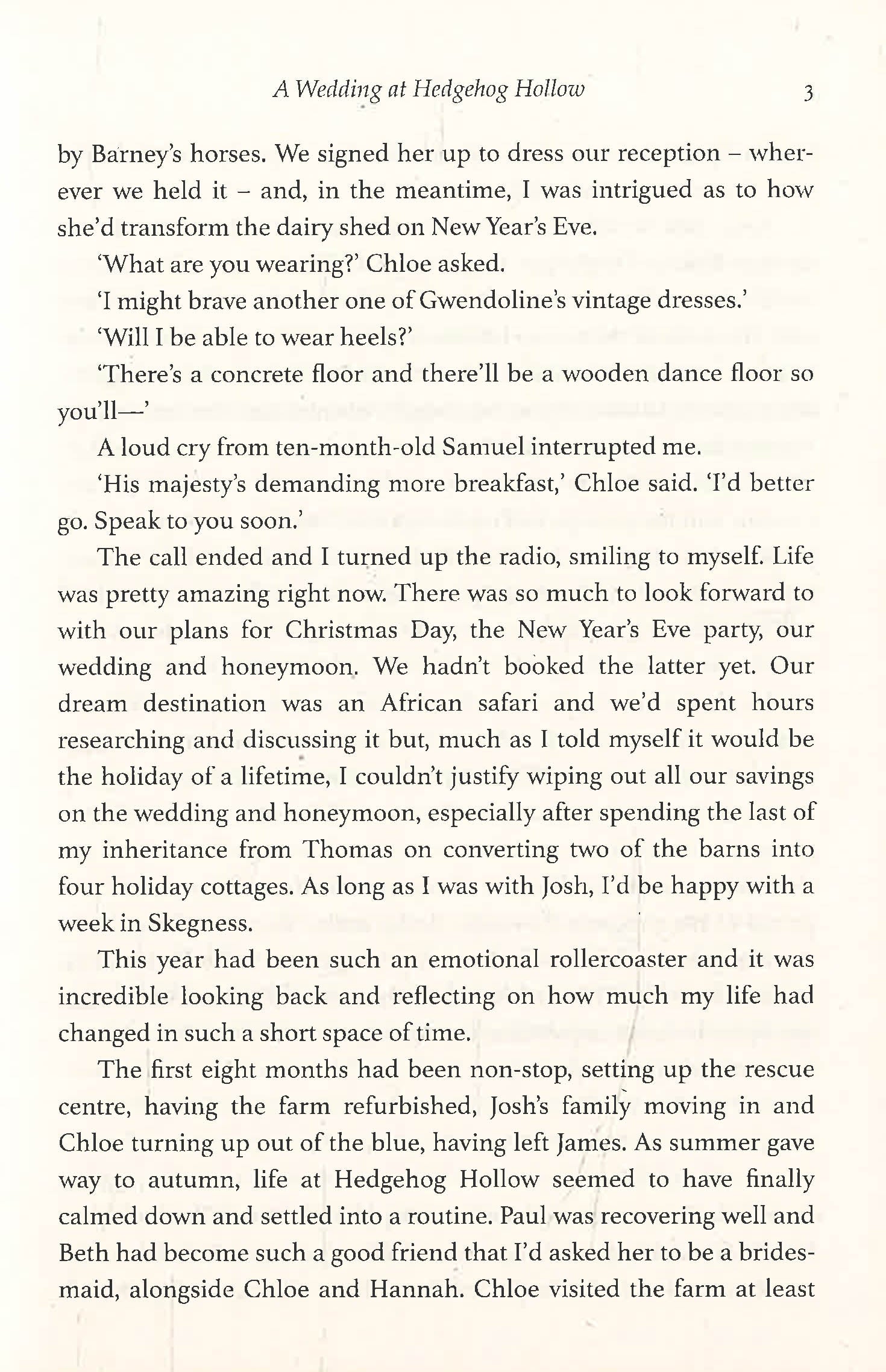 Life at Hedgehog Hollow is never dull, although Samantha hopes that the new year ahead will be a little less chaotic as she prepares to marry the love of her life, Josh. But disaster strikes when she checks the rescue centre's bank account after the festive season and discovers it has been emptied. Who would do such a thing, and why? With the future of Hedgehog Hollow now in jeopardy, planning a wedding has lost its shine.