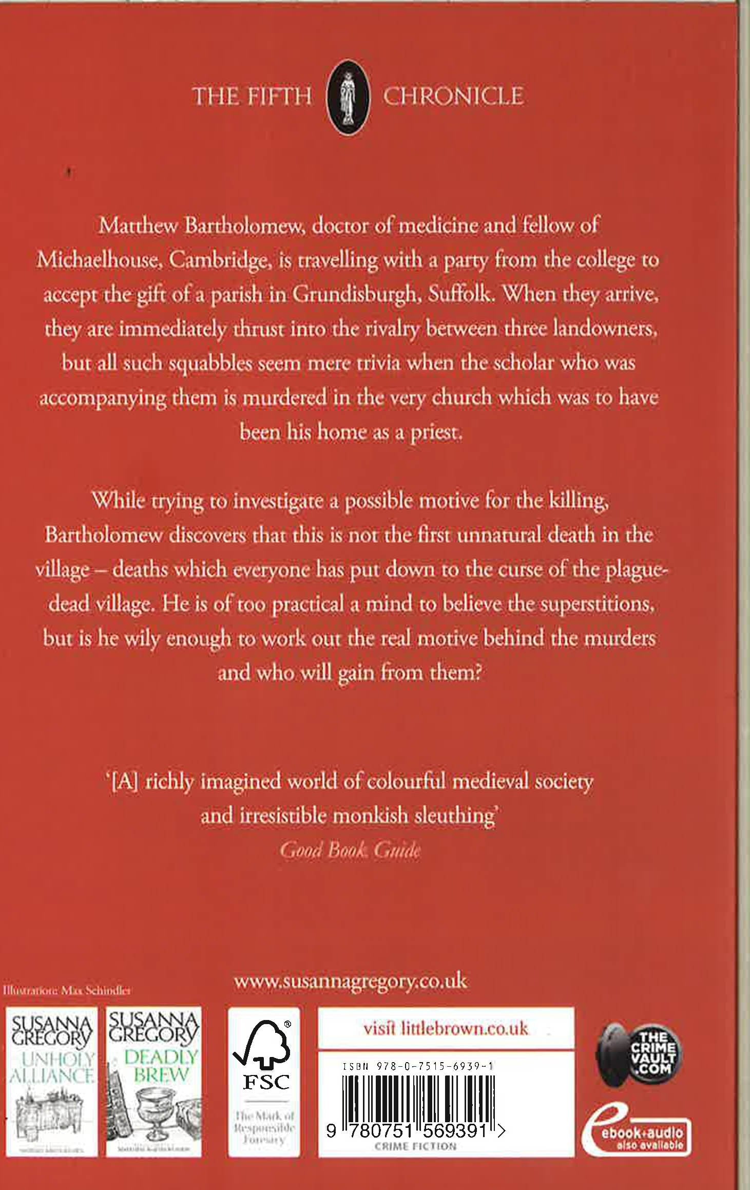 While trying to investigate a possible motive for his killing, Bartholomew discovers that this is not the first unnatural death in the village - deaths which everyone has put down to the curse of the plague-dead village. He is of too practical a mind to believe the superstitions, but is he wily enough to work out the real motive behind the murders and who will gain from them?