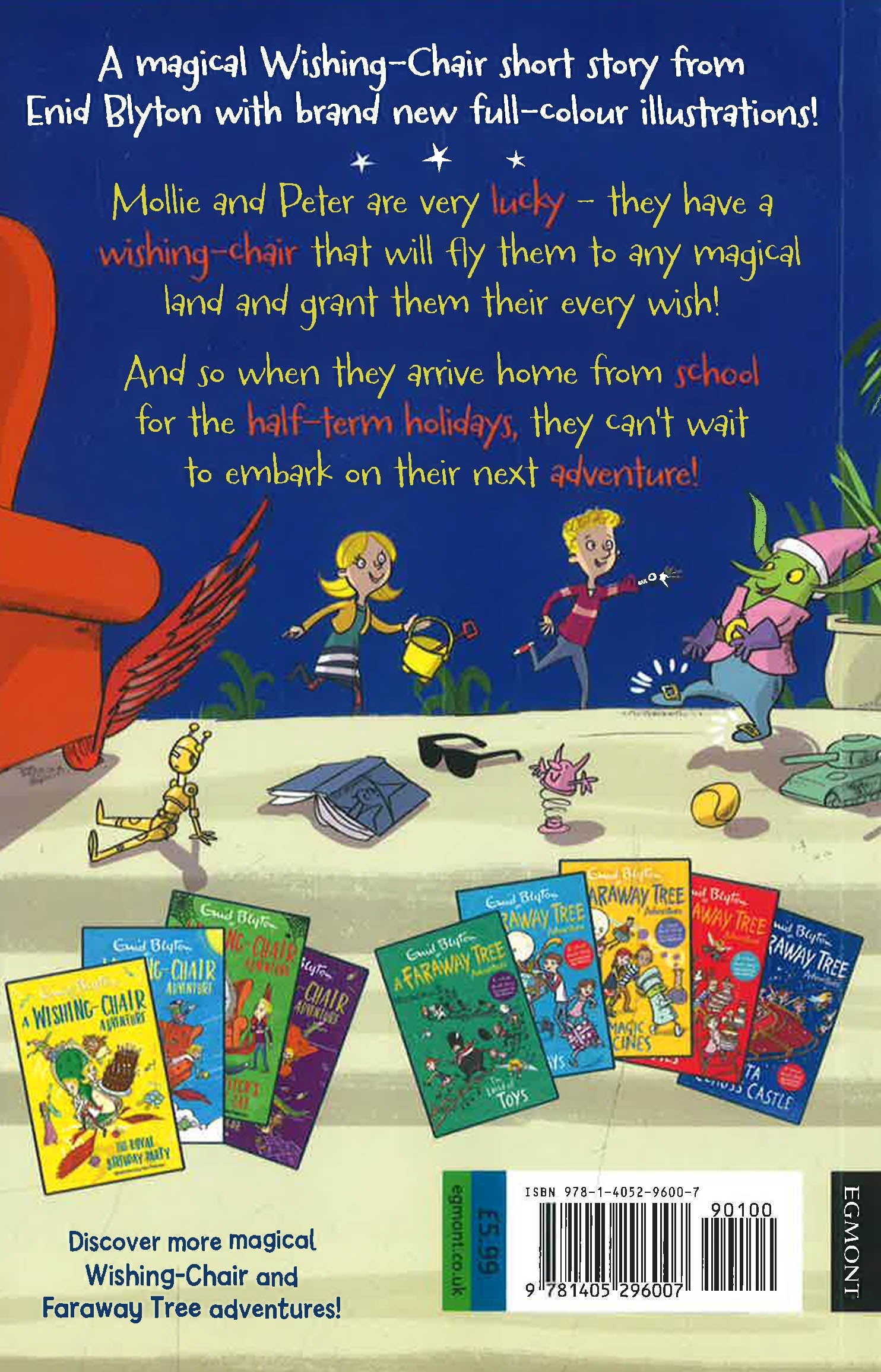 A brand new full-colour short story from Blyton's magical Wishing-Chair series - an excellent companion to the successful Magic Faraway Tree Adventure series and perfect for readers age 5+ Mollie and Peter are very lucky - they have a Wishing-Chair that will fly them to any magical land and grant them their every wish! And so when they arrive home from school for the half-terms holidays, they can't wait to embark on their next adventure! Short chapters and beautiful full-colour illustrations from Alex Paterson make the Wishing-Chair Adventures series perfect bedtime reading for children aged five and upwards. A richly nostalgic offering for grandparents and parents to share with the next generation of Blyton fans. 'Her books were terrific page-turners in the way no others were' - Michael Morpurgo, author of War Horse. Enid Blyton is arguably the most famous children's author of all time, thanks to series such as The Wishing-Chair, The Magic Faraway Tree, The Mysteries, Famous Five and The Secret Seven. Her fantasy books, including The Adventures of the Wishing-Chair, are among her most popular creations and they promise to enchant boys and girls for generations to come. Enid Blyton takes her place alongside Roald Dahl, Beatrix Potter, and A. A. Milne as one of Britain's true heritage children's authors. She remains one of the world's best-loved storytellers and is consistently voted a children's favourite in reader polls.