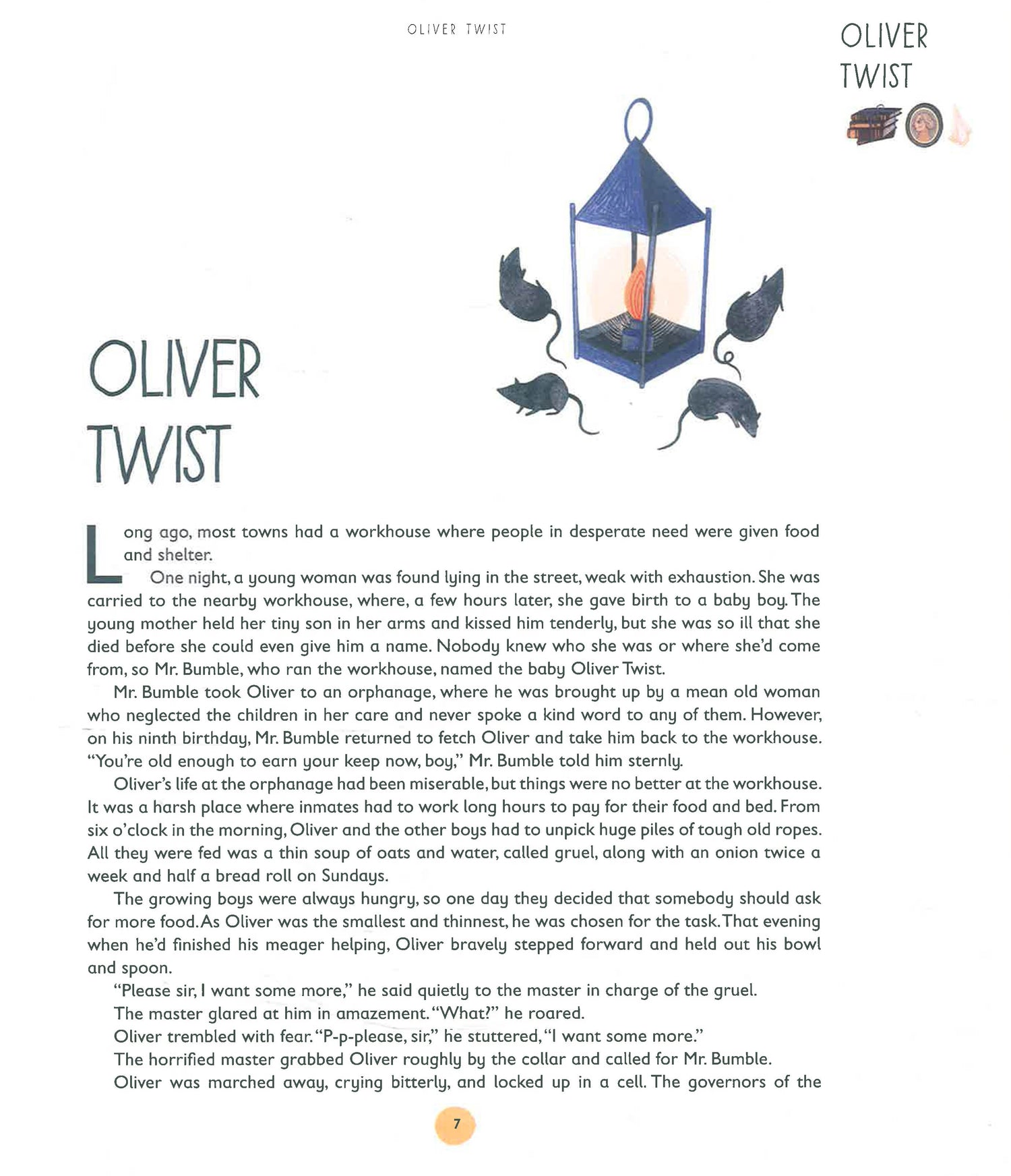 This book introduces children to eight of Dickens' greatest works, accompanied by beautiful, colorful illustrations that breathe new life into these timeless classics. Includes favorites such as Oliver Twist, A Christmas Carol, David Copperfield, and Great Expectations. A timeline at the back shows when each story was written, and gives facts about Dickens' life.