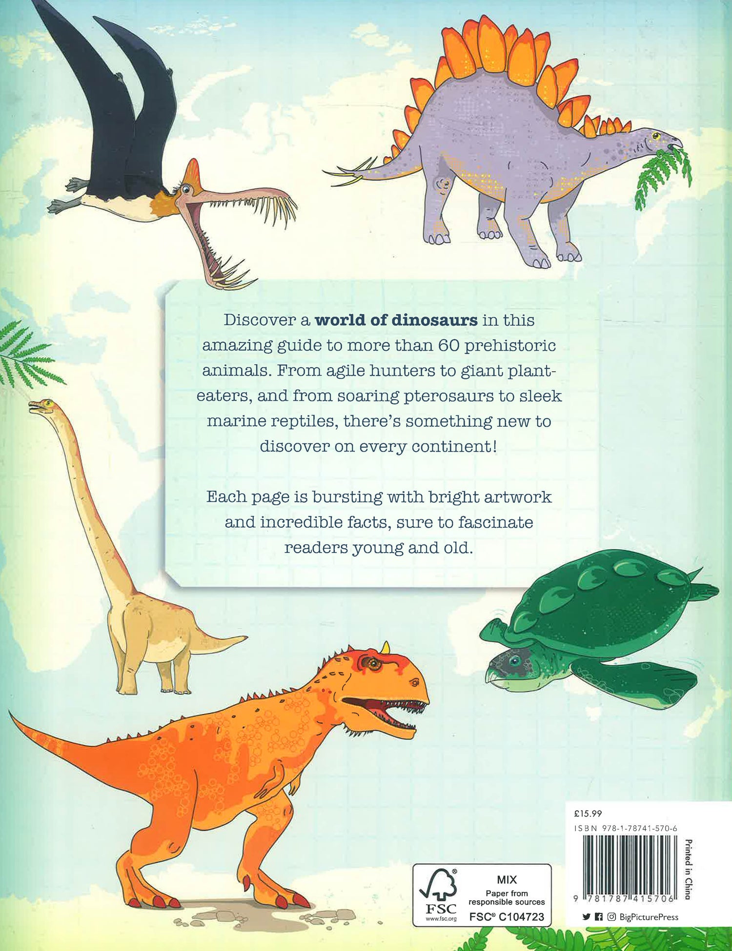 Travel back in time and discover what the world looked like in the age of the dinosaurs! Moving from continent to continent, readers will discover more than 60 incredible species, from favourites like T.rex to new and exciting discoveries. Vicky Woodgate's vibrant illustrations are accompanied by insightful and surprising text by palaeontologist Jon Tennant. Wood-free paper and a stylish design give this book a gifty feel, and mean it will appeal to dinosaur lovers young and old.