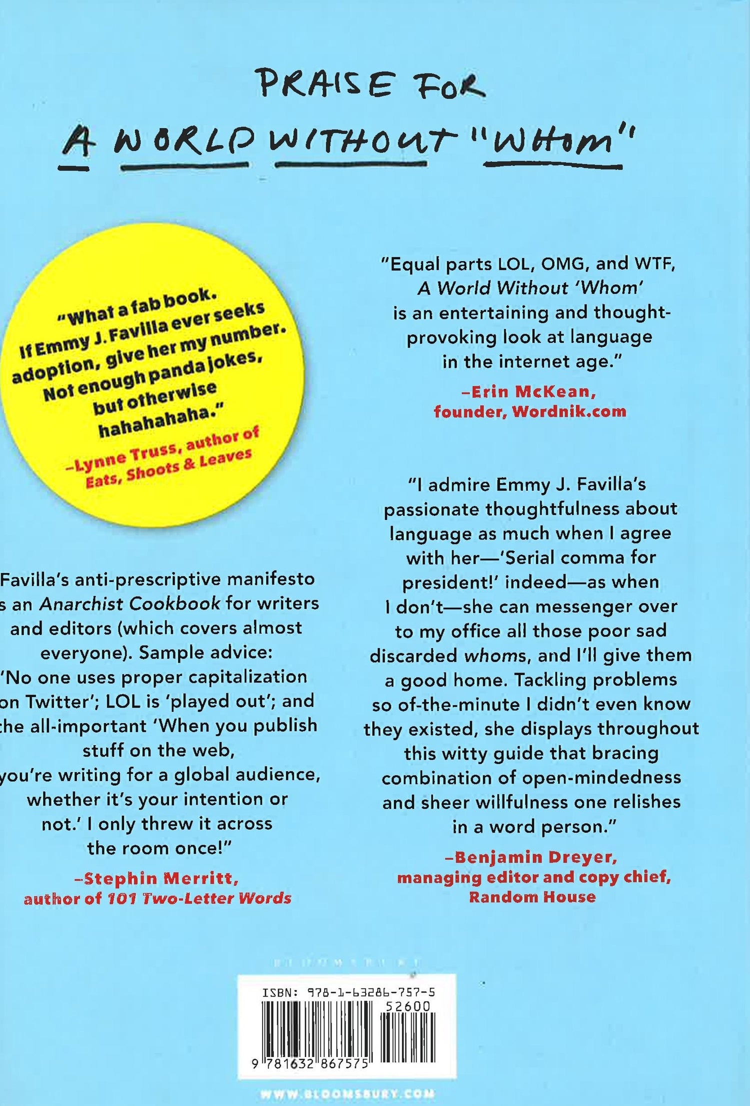 The liveliest book about language since Between You & Me, BuzzFeed copy chief Emmy Favilla?s A World Without ?Whom? explores the new rules of writing in the age of social media, memes, emojis, and web slang.