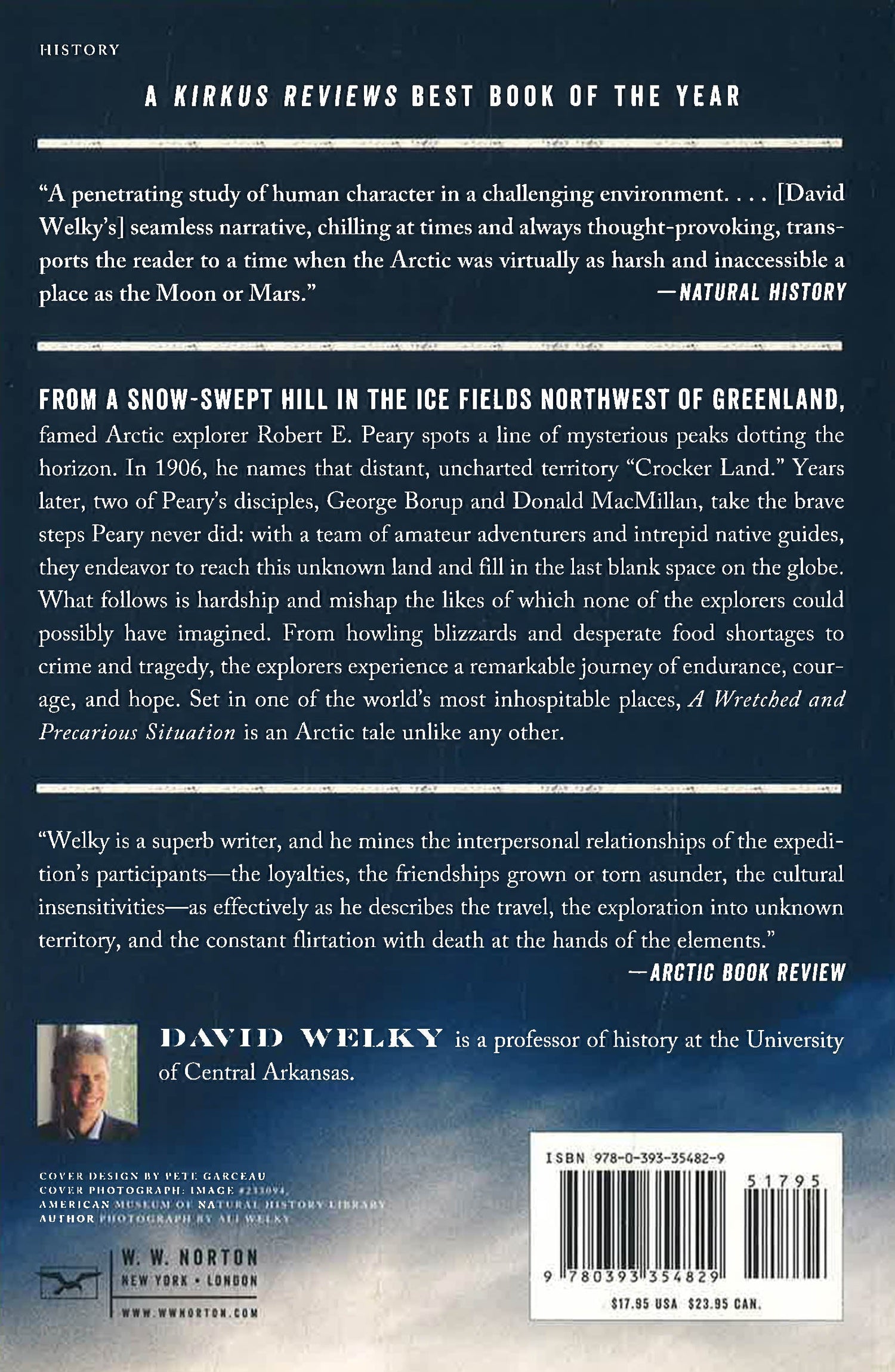 In 1906, from the ice fields northwest of Greenland, Commander Robert E. Peary spotted an unknown land in the distance. He called it “Crocker Land”. Scientists and explorers agreed that Peary had found a new continent. Several years later, two of his disciples, George Borup and Donald MacMillan—with the sponsorship of the American Museum of Natural History—assembled a team to investigate. They pitched their two-year mission as a scientific tour de force to fill in the last blank space on the globe. But the Crocker Land Expedition became a five-year ordeal that endured a fatal boating accident, a drunken captain, a shipwreck, marooned rescue parties, disease, dissension and a crewman-turned-murderer. Based on a trove of unpublished letters, diaries and field notes, A Wretched and Precarious Situation is a harrowing adventure.
