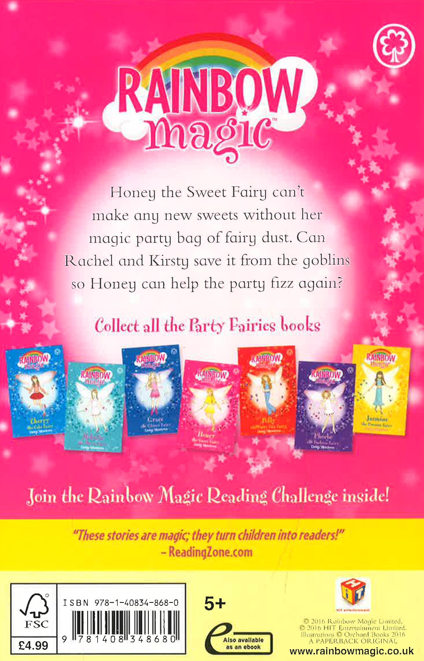 Read all seven fairy adventures in the Party Fairies set! Cherry the Cake Fairy, Melodie the Music Fairy; Grace the Glitter Fairy; Honey the Sweet Fairy; Polly the Party Fun Fairy; Phoebe the Fashion Fairy; Jasmine the Present Fairy