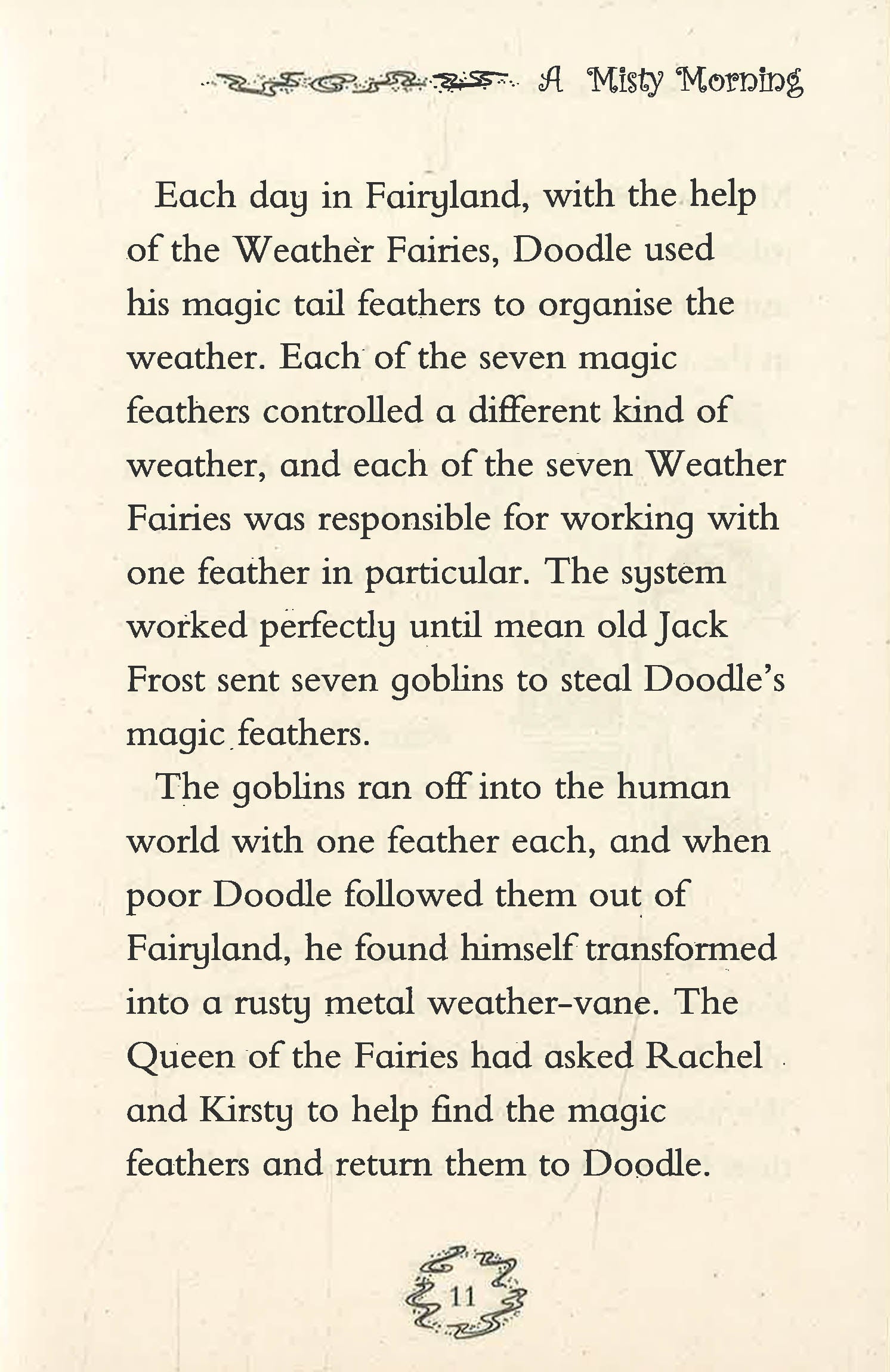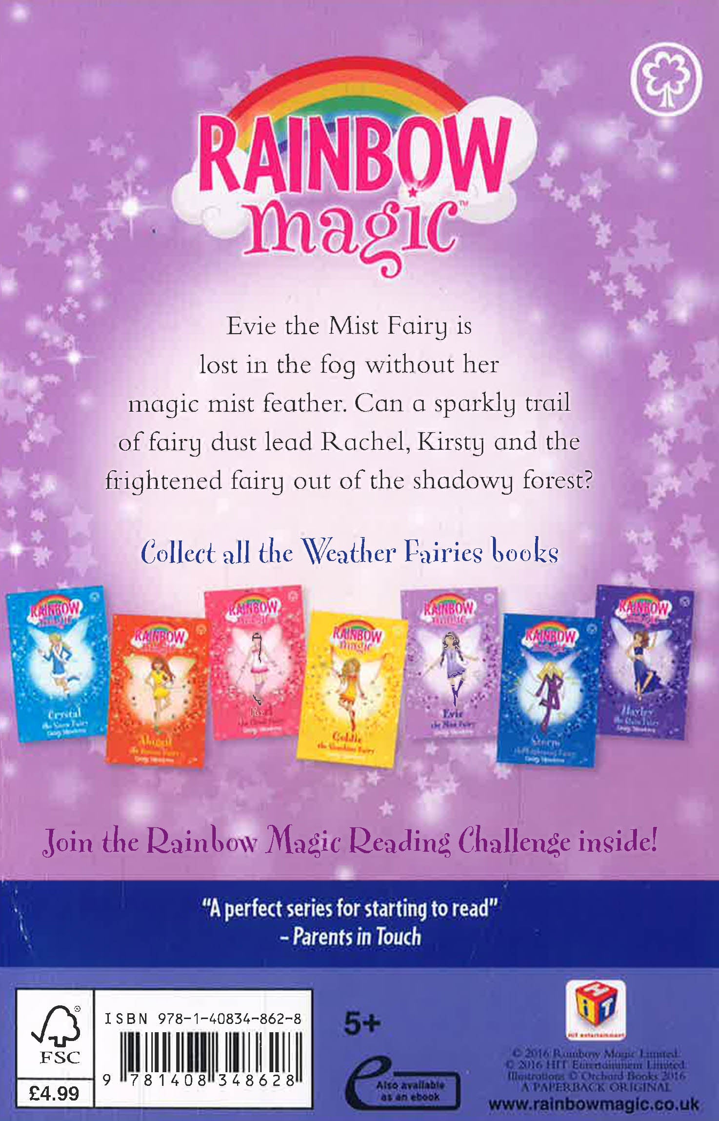 Evie the Mist Fairy is lost in the fog without her magic mist feather. Can a sparkly trail of fairy dust lead Rachel, Kirsty and the frightened fairy out of the shadowy forest?