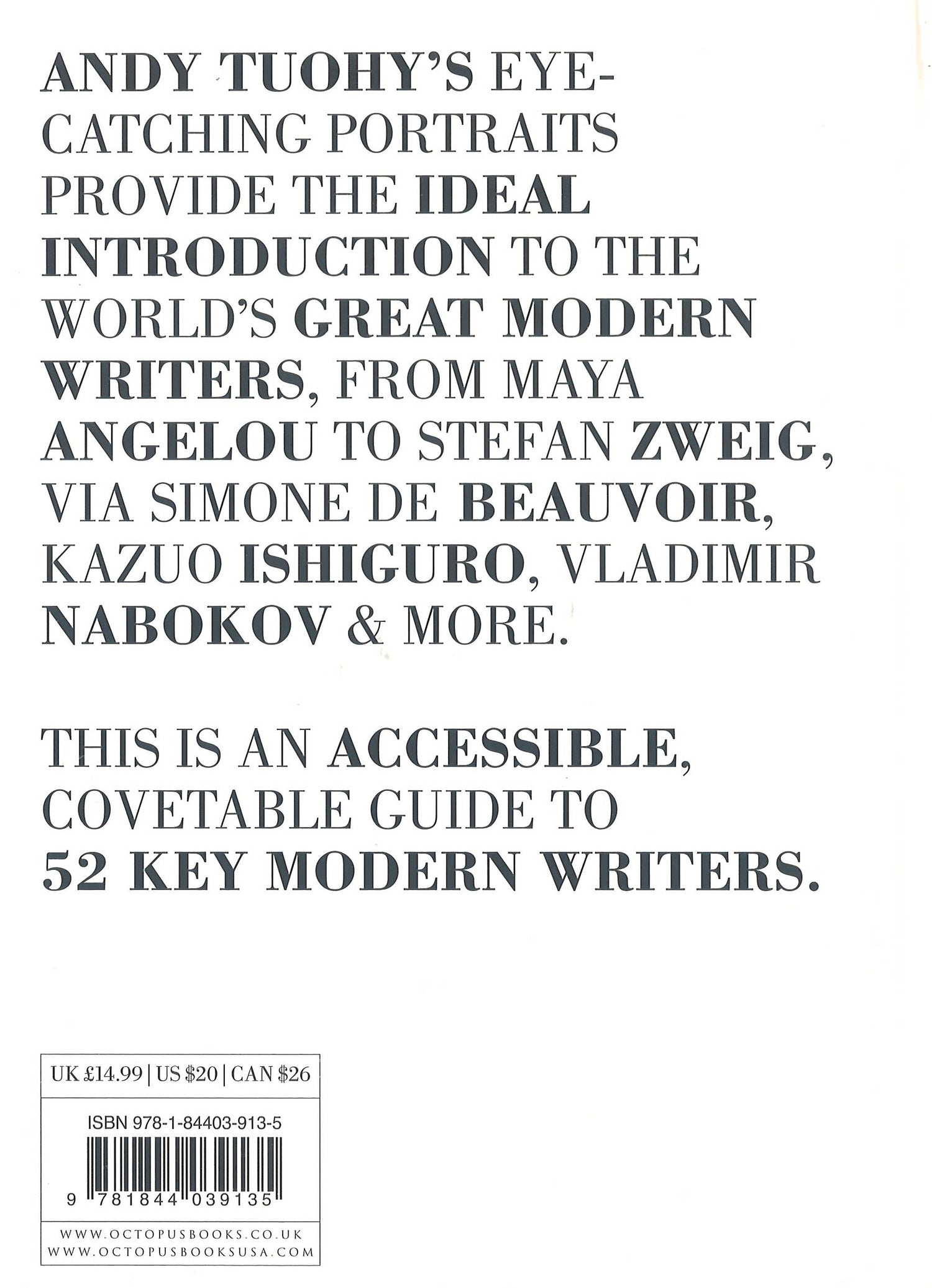 Artist and graphic designer Andy Tuohy turns his hand to the world of literature, in this new instalment of the A-Z series. Rendered in his distinctive style, this new book features portraits of 52 key modern writers significant for their contribution to literature, with a whole host of names from across the world including Gabriel García Márquez, Samuel Beckett, Émile Zola, Jung Chang, Franz Kafka and Leo Tolstoy to name but a few. Each writer's entry will also have a summary of the essential things you need to know about them, why they are important in the field of literature, a list of their must-read books, and a surprising fact or two about them, as well as other images throughout such as of famous book covers and author photographs. A fun, easy guide to some of the best writers of modern times, this would be a great gift for an English Lit student, and anyone who just loves literature.