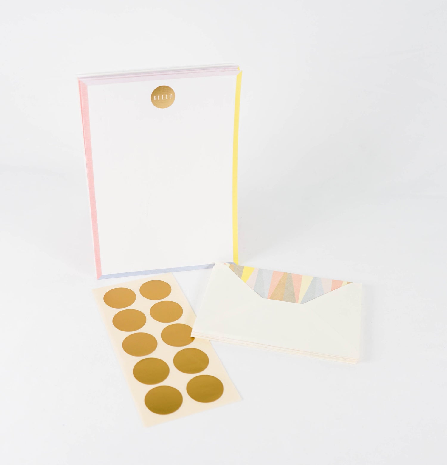 10 headed writing sheets, 10 follow-on sheets, 10 envelopes