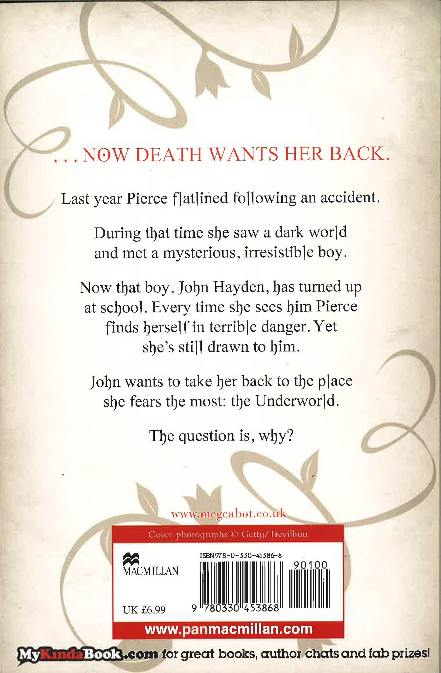 Last year, Pierce died - just for a moment. And when she was in the space between life and death, she met John. Tall dark and terrifying, it's his job to usher souls from one realm to the next. There's a fierce attraction between them, which Pierce carries back into our world. But she knows that if she allows herself to fall for John she will be doomed to a life of shadows and loneliness in the Underworld. When things get dangerous for her, her only hope is to do exactly what John says. Can she trust a guy who lives for the dead? *This book may contains minor shelve wear