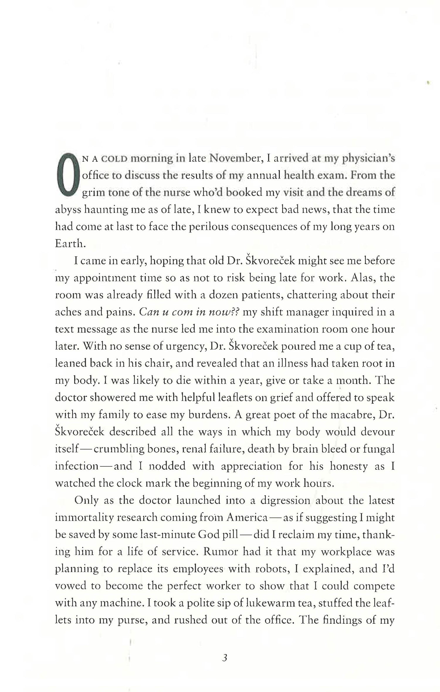 Tereza, the star researcher for VITA, a biotech company hellbent on discovering the key to immortality, is overjoyed to meet her mother, with whom she forms an instant, profound connection. But when their time together is cut short by shocking events, Tereza must uncover VITA’s alarming activity in the wastelands of what was once Florida, and persuade the Czech brother she’s never met to join her in this odds-defying adventure.