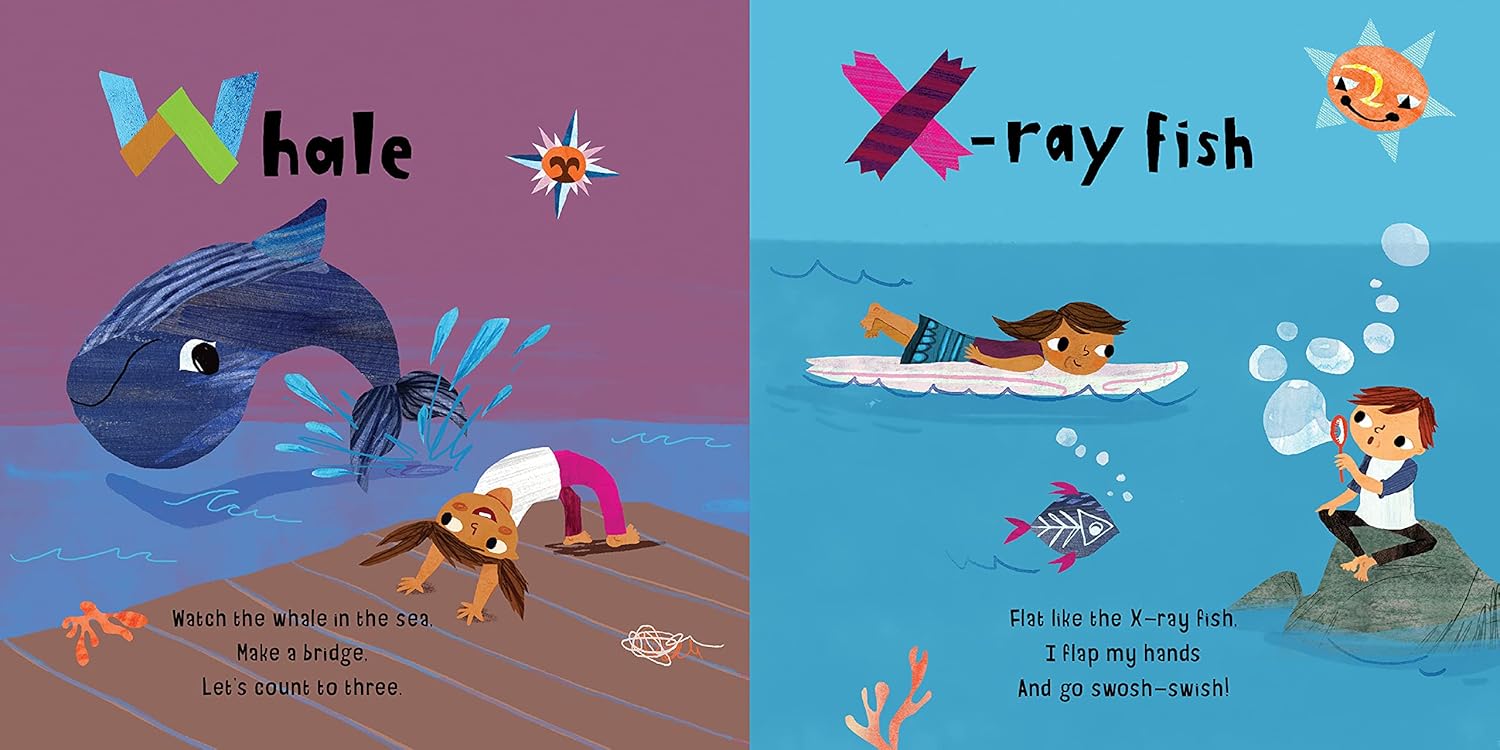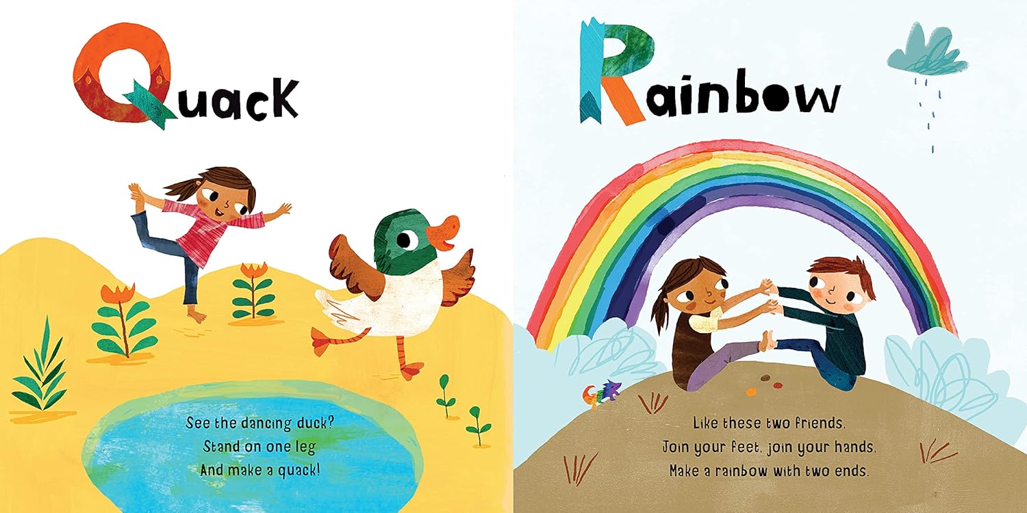 Crawl like a crocodile, stretch like a fox, and hop like a grasshopper, discovering basic yoga poses as you learn the alphabet. A fun family read, this interactive book is perfect for teaching toddlers their ABCs, as well as introducing them to familiar animals and basic, simplified yoga poses that promote health and well-being. Each letter of the alphabet is paired with an engaging illustration mimicking the various animals’ natural movements. Clever rhymes explain how toddlers (and their parents!) can copy the poses, each of which encourage movement, physical fitness, and mental health.
