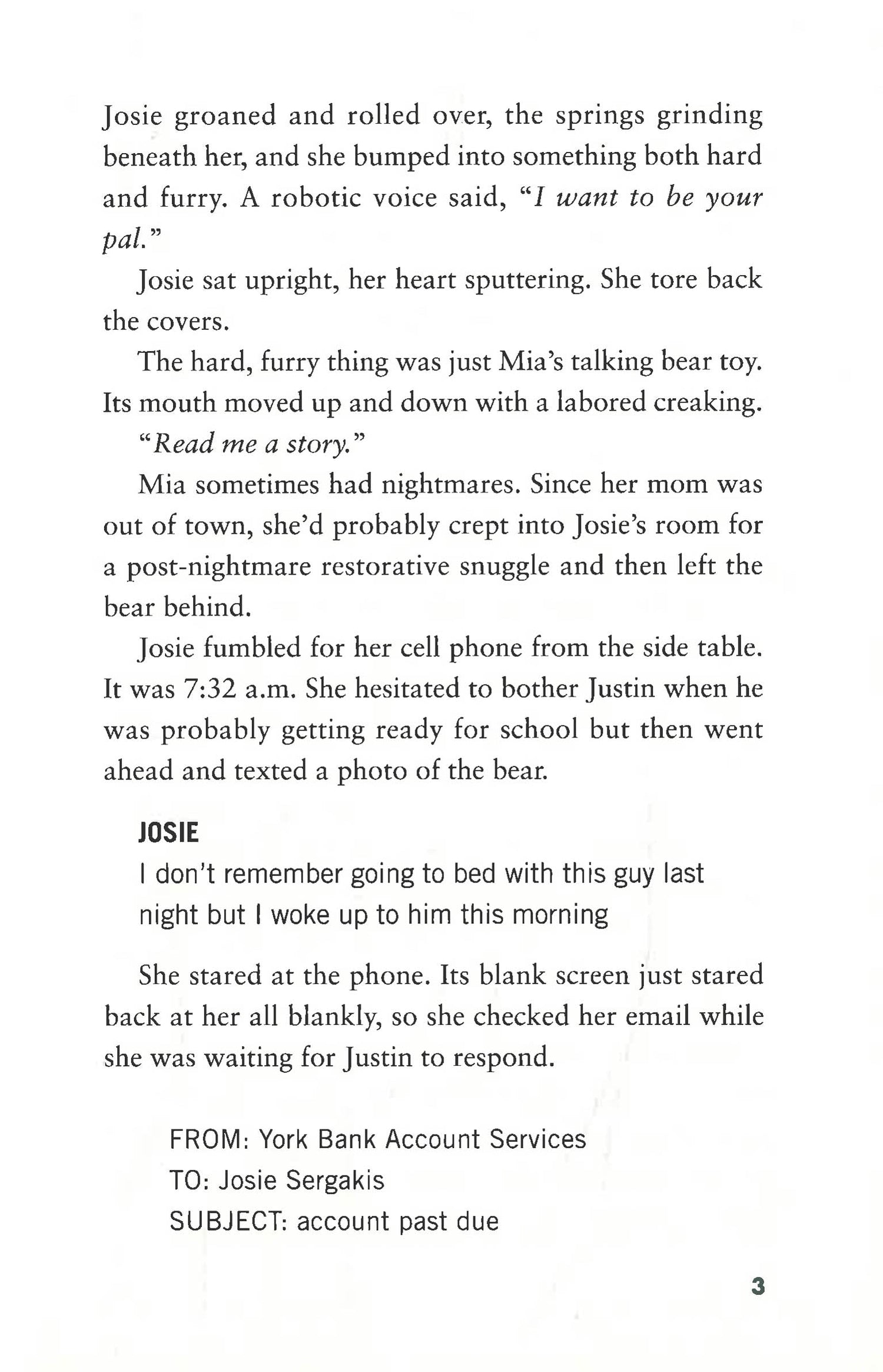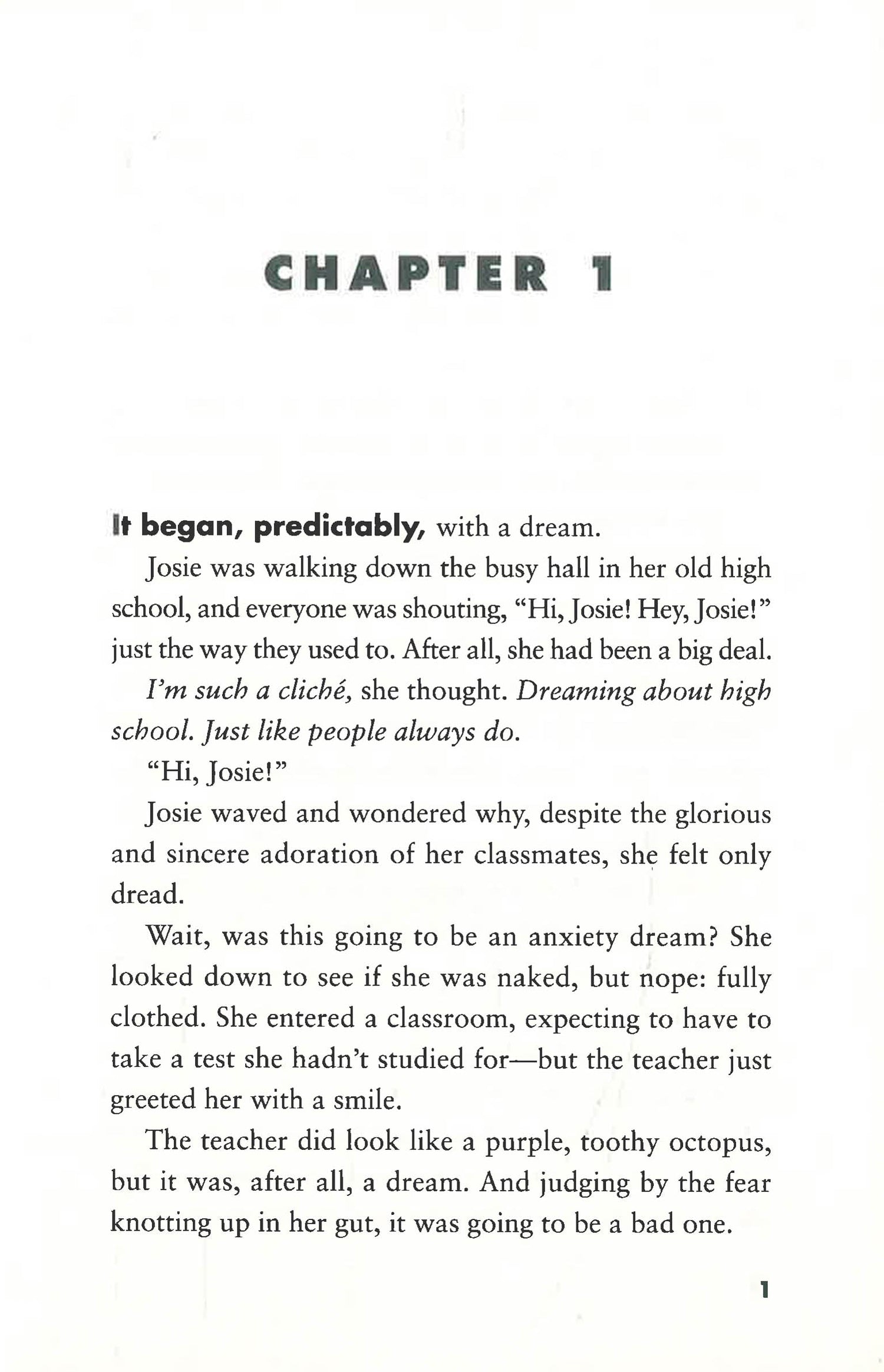 Josie Pie was born to be a star. So she dropped out of high school to pursue her Broadway dreams, but after months of failed auditions, she finds herself broke, beaten-down . . . and nannying in Missoula, Montana. Lonely and directionless, Josie checks out the local bookstore, looking for the ultimate escape. And escape she does. Literally. She falls into the plots of her books, including a bodice ripper, a dystopian thriller, a YA romance, and more, all filled with swoony co-stars who just make her yearn to repair things with the boyfriend she left behind in NYC. As her reality begins to unravel, what starts as a welcome break from her lackluster life soon begins to feel like a stifling nightmare - but is it too late for Josie to get back to the real world?