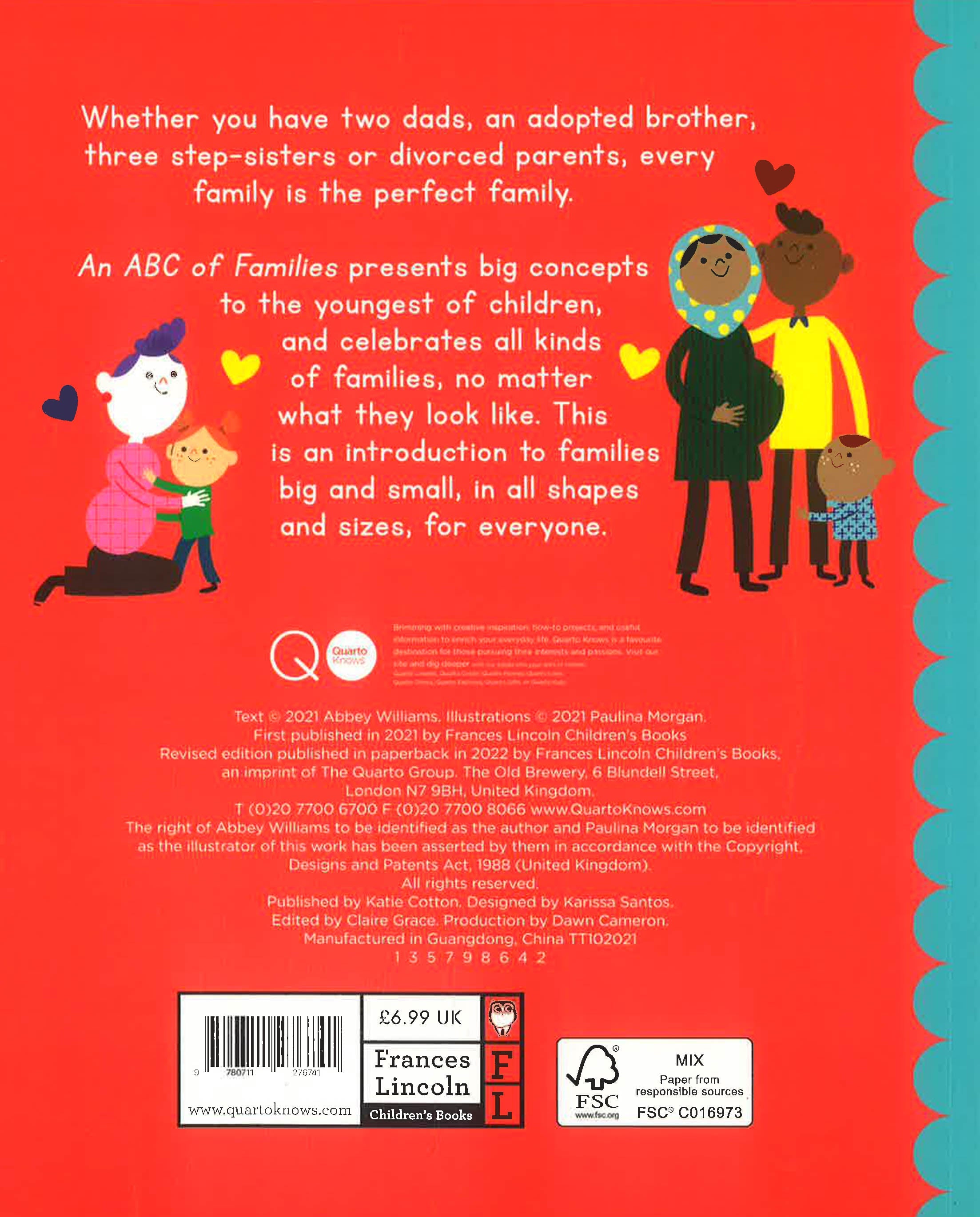 An ABC of Families introduces children to the wonderful diversity of family life, using bright, engaging illustrations to explain how every family is unique in its own way.