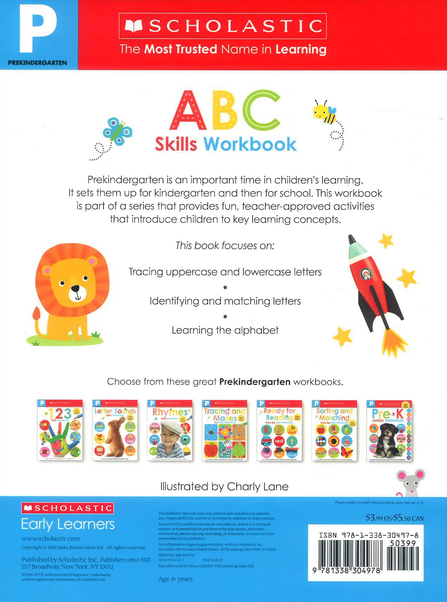 A strong educational foundation helps ensure a child is able to benefit from the learning opportunities available at preschool. In Pre-K Skills Workbook: ABC, children in Pre-K can practice the key learning concept of the alphabet in a more in-depth way. The bright colorful pages with a delightful blend of photographs and illustrations make these workbooks some of the most eye-catching and engaging available for this age group. And two pages of stickers will help reinforce the learning and keep little ones excited and ready for the next step in school!Scholastic Early Learners: Interactive books for hands-on learning. Perfect for babies, toddlers, preschoolers, kindergartners, and first graders, too!