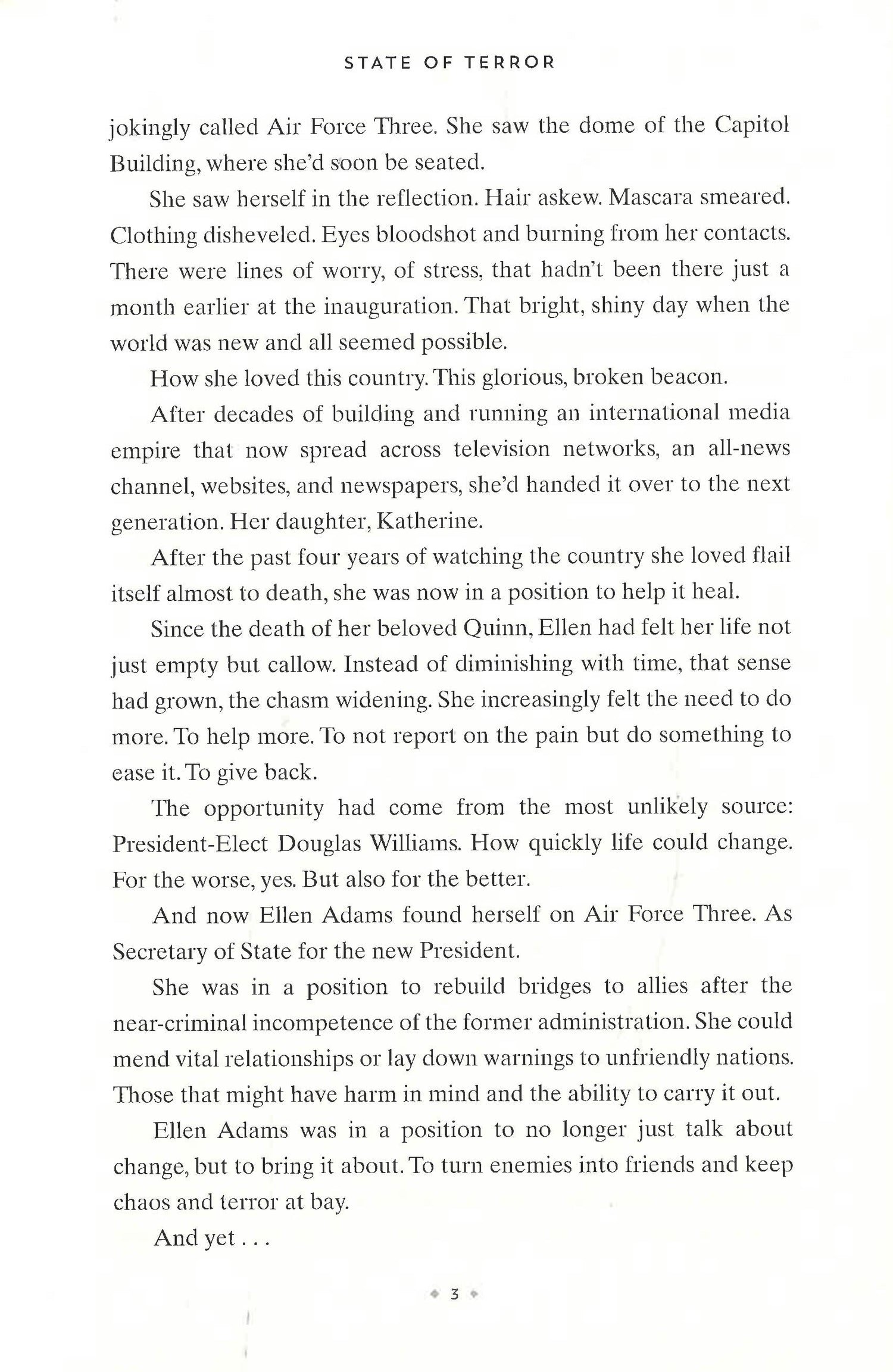 As the horrifying scale of the threat becomes clear, Secretary Adams and her team realize it has been carefully planned to take advantage of four years of an American government out of touch with international affairs, out of practice with diplomacy, and out of powerin the places where it counts the most.