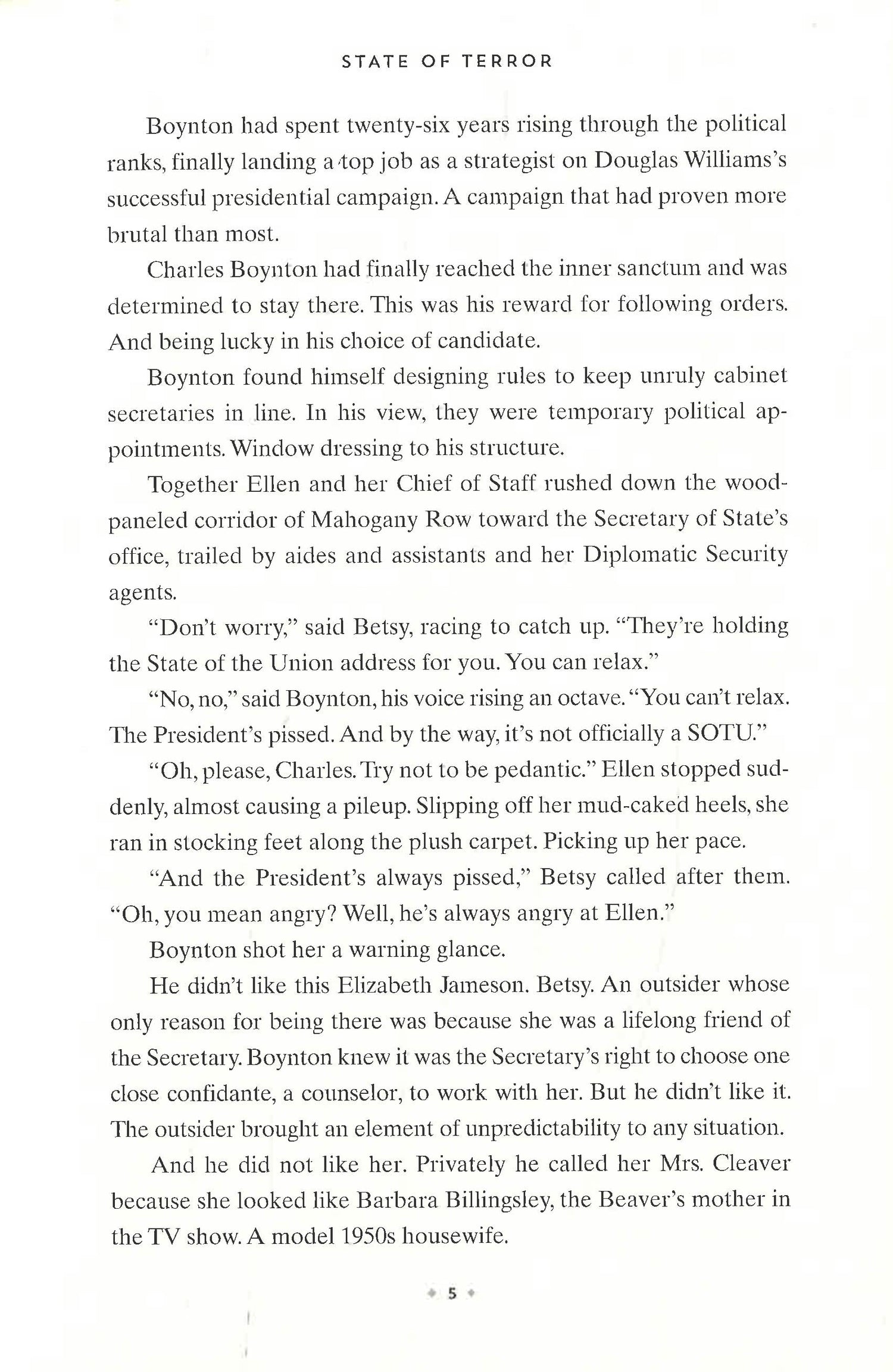 To defeat such an intricate, carefully constructed conspiracy, it will take the skills of a unique team: a passionate young FSO; a dedicated journalist; and a smart, determined, but as yet untested new secretary of state.