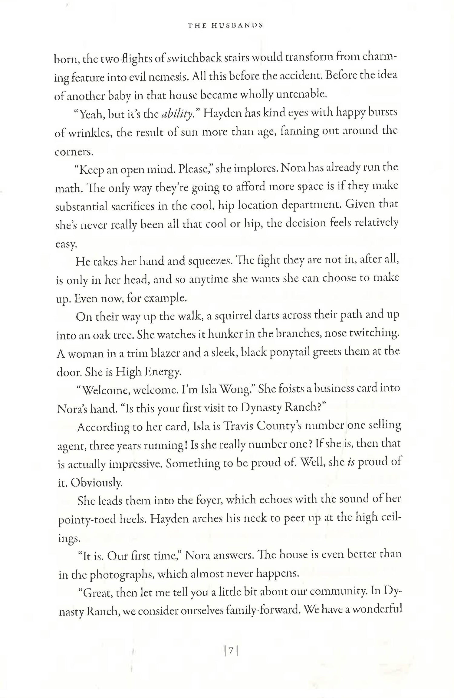 When the Spanglers go house hunting in Dynasty Ranch, an exclusive suburban neighborhood, Nora meets a group of high-powered women―a tech CEO, a neurosurgeon, an award-winning therapist, a bestselling author―with enviably supportive husbands. When she agrees to help with a resident’s wrongful death case, she is pulled into the lives of the women there. She finds the air is different in Dynasty Ranch. The women aren’t hanging on by a thread.