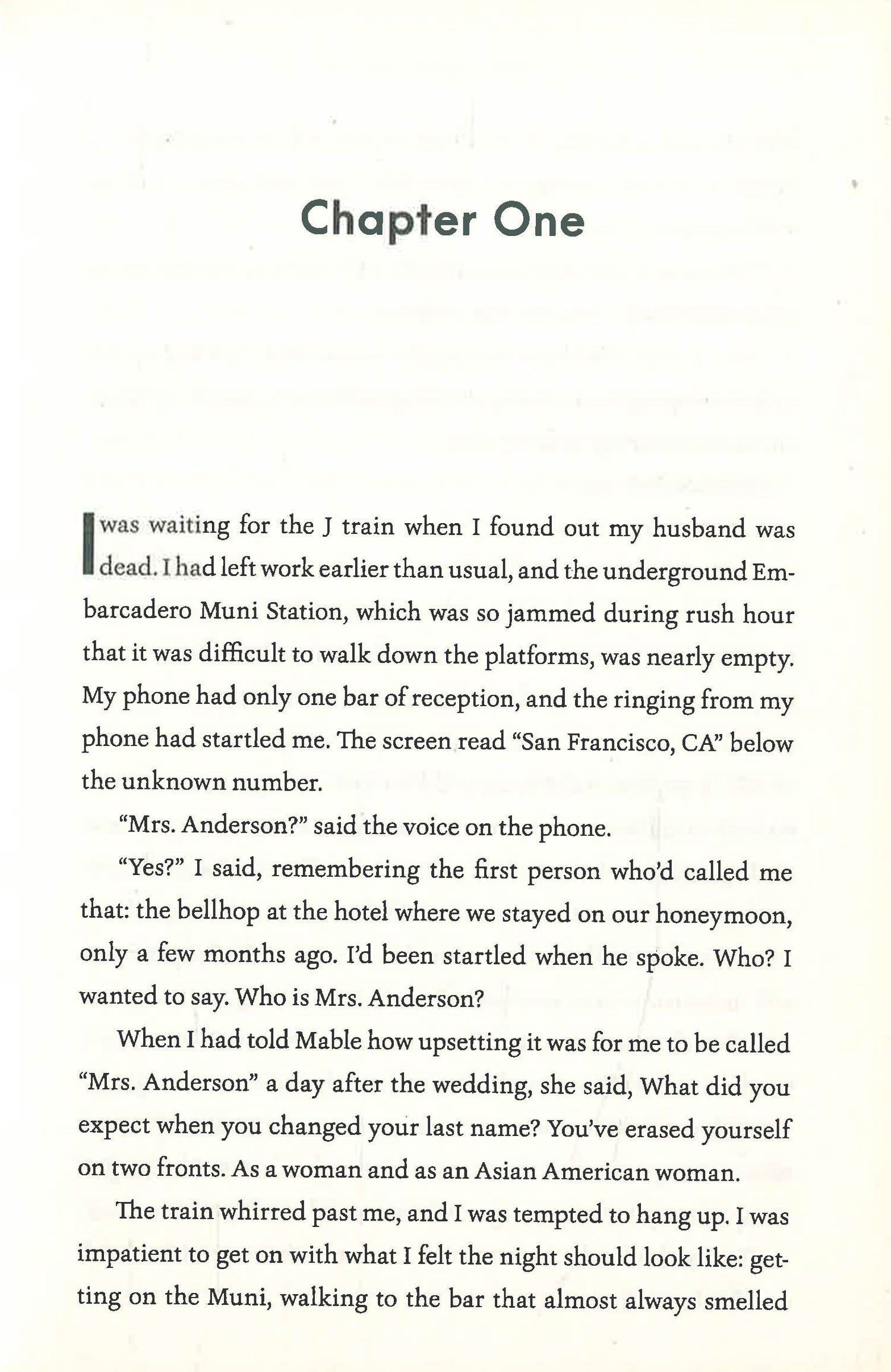 Just days after her young, handsome husband dies in a car accident, Ellie Huang discovers that he had a mistress--one of her own colleagues at a prestigious San Francisco law firm. Acting on impulse--or is it grief? rage? Probably all three--Ellie cashes in Ian's life insurance policy for an extended stay at the luxurious Hotel du Cap-Eden-Roc in Antibes, France. Accompanying her is her free-spirited best friend, Mable Chou.