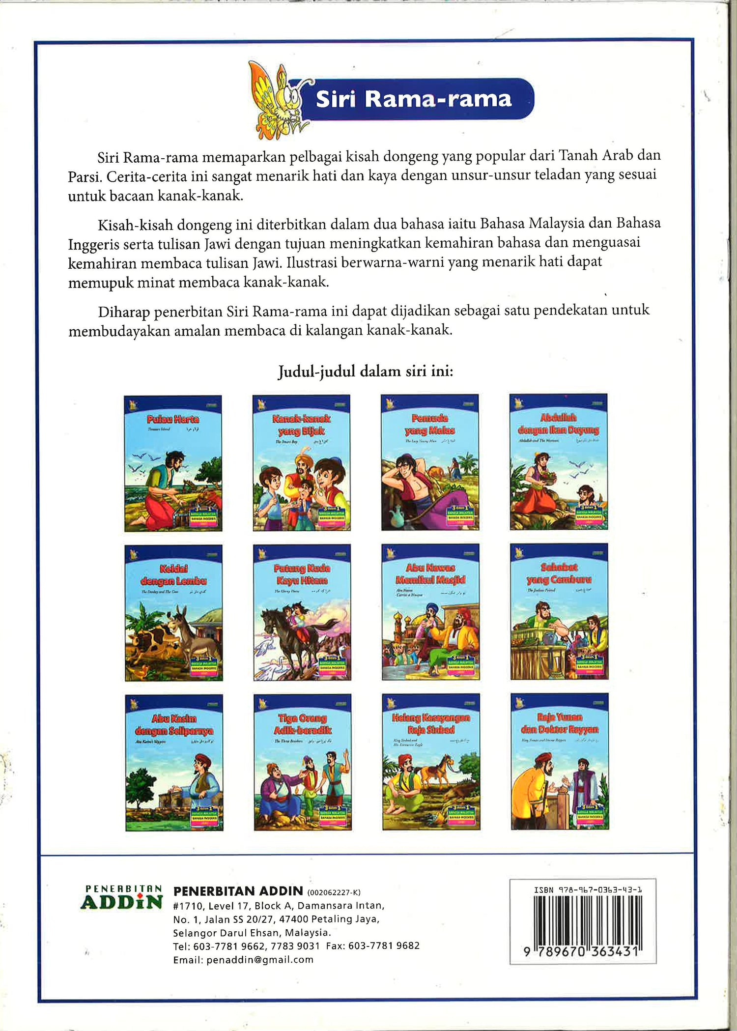 Siri Rama-rama memaparkan pelbagai kisah dongeng yang popular dari Tanah Arab dan Parsi. Cerita-cerita ini sangat menarik hati dan kaya dengan unsur-unsur teladan yang sesuai untuk bacaan kanak-kanak.
