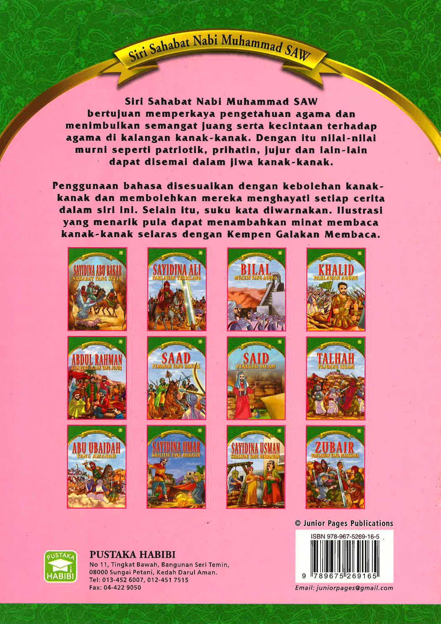 Siri Sahabat Nabi Muhammad SAW bertujuan memperkaya pengetahuan agama dan menimbulkan semangat juang serta kecintaan terhadap agama di kalangan kanak-kanak. Dengan itu nilai-nilai murni seperti patriotik, prihatin, jujur dan lain-lain dapat disemai dalam jiwa kanak- kanak. Penggunaan bahasa disesuaikan dengan kebolehan kanak kanak dan membolehkan mereka menghayati setiap cerita dalam siri ini. Selain itu, suku kata diwarnakan. Ilustrasi yang menarik pula dapat menambahkan minat membaca kanak-kanak selaras dengan Kempen Galakan Membaca.