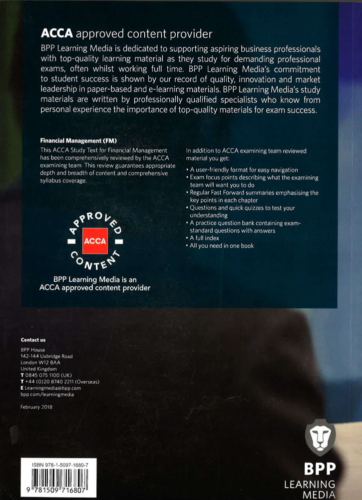 Suitable for exams from September 2018 until August 2019BPP Learning Media is an ACCA approved content provider. Our suite of study tools will provide you with all the accurate and up-to-date material you need for exam success.