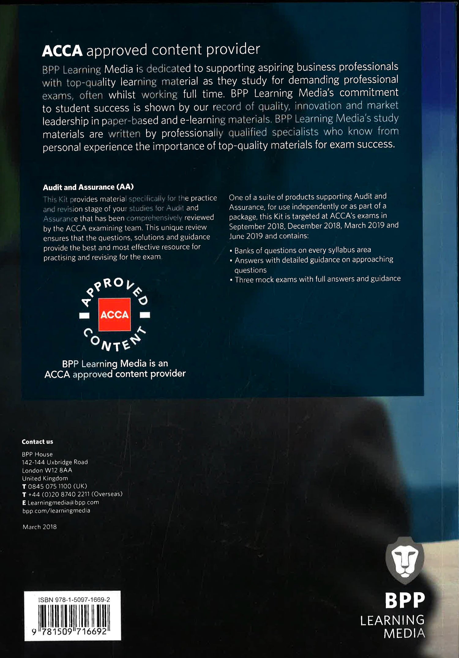 Suitable for exams from September 2018 until August 2019BPP Learning Media is an ACCA approved content provider. Our suite of study tools will provide you with all the accurate and up-to-date material you need for exam success.