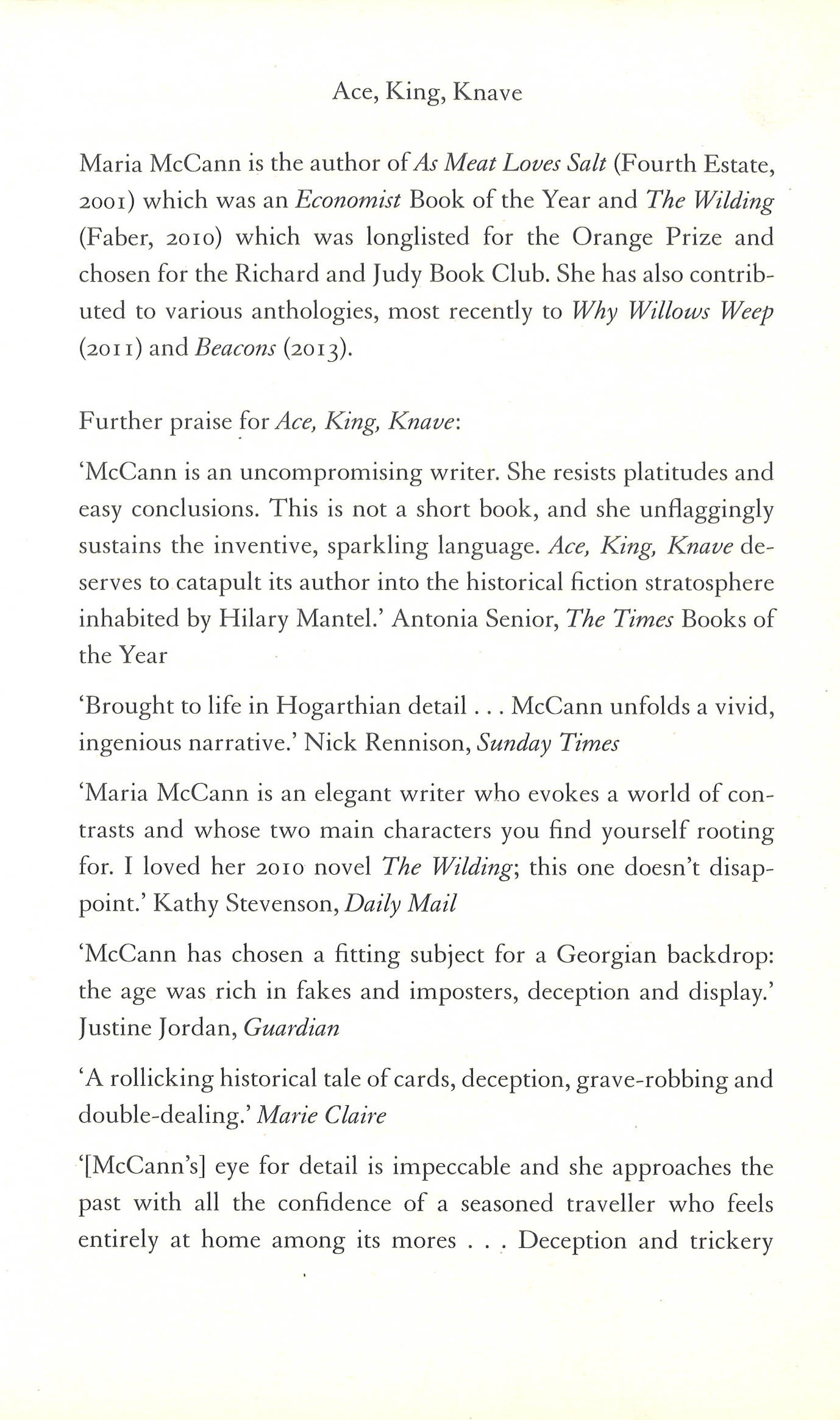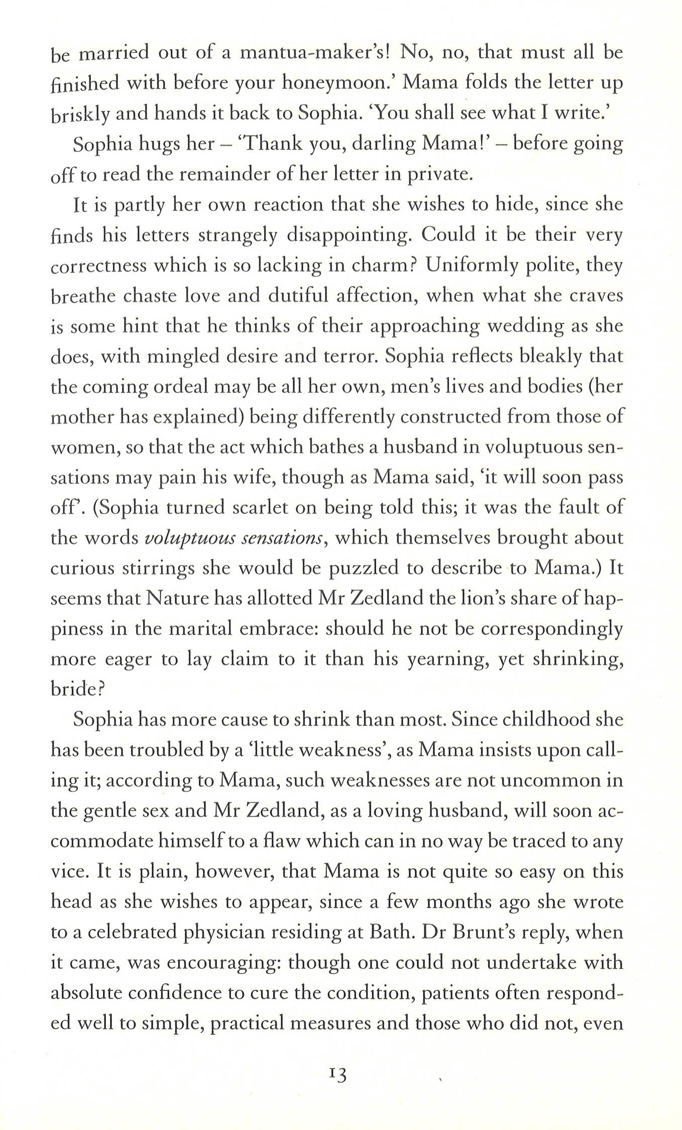 Sophia - rational, demure, and hiding a 'little weakness' - has recently married the charismatic Mr Zedland. But Zedland has secrets of his own and Sophia comes to suspect that her marriage is not what it seems. In cramped rooms in Covent Garden, Betsy-Ann shuffles a pack of cards.