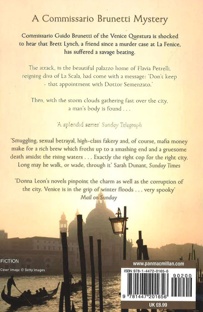 Commissario Guido Brunetti of the Venice Questura is shocked to hear that Brett Lynch, a friend since a murder case at La Fenice, has suffered a savage beating.