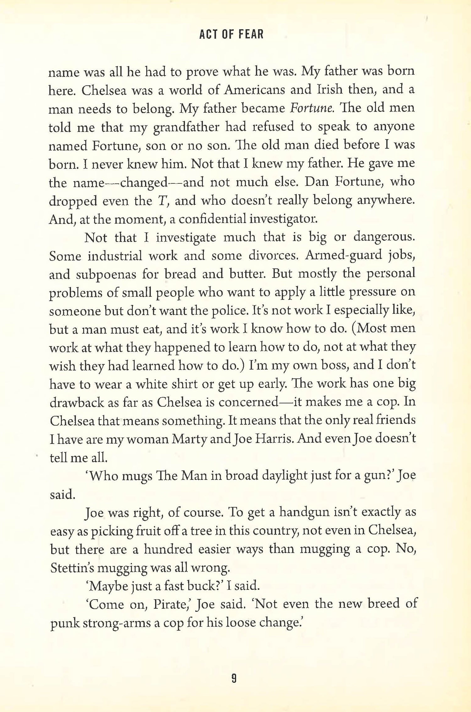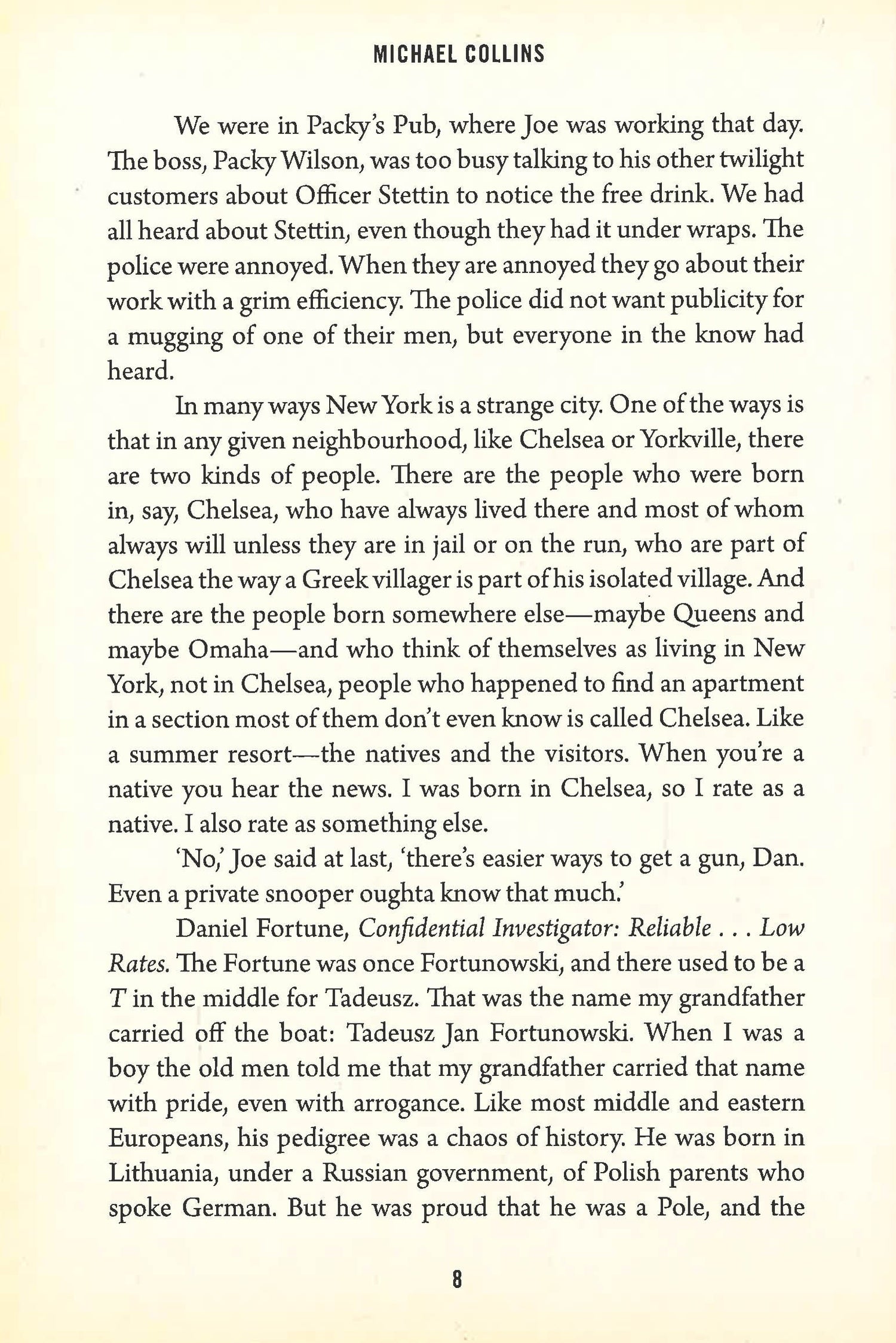 Until he lost his arm, Dan Fortune was known all over Chelsea as a crook with promise. Since fate forced him to go straight, he has become the resident private eye of this run-down part of Manhattan, chiselling a career out of divorce work and subpoena delivery. But a big case is coming his way. A beat cop is mugged in broad daylight and the only possible witness disappears the next morning. Unsure if hes looking for a witness or a perp, Fortune hunts for the kid, unearthing ugly secrets in a neighbourhood he thought he knew well.