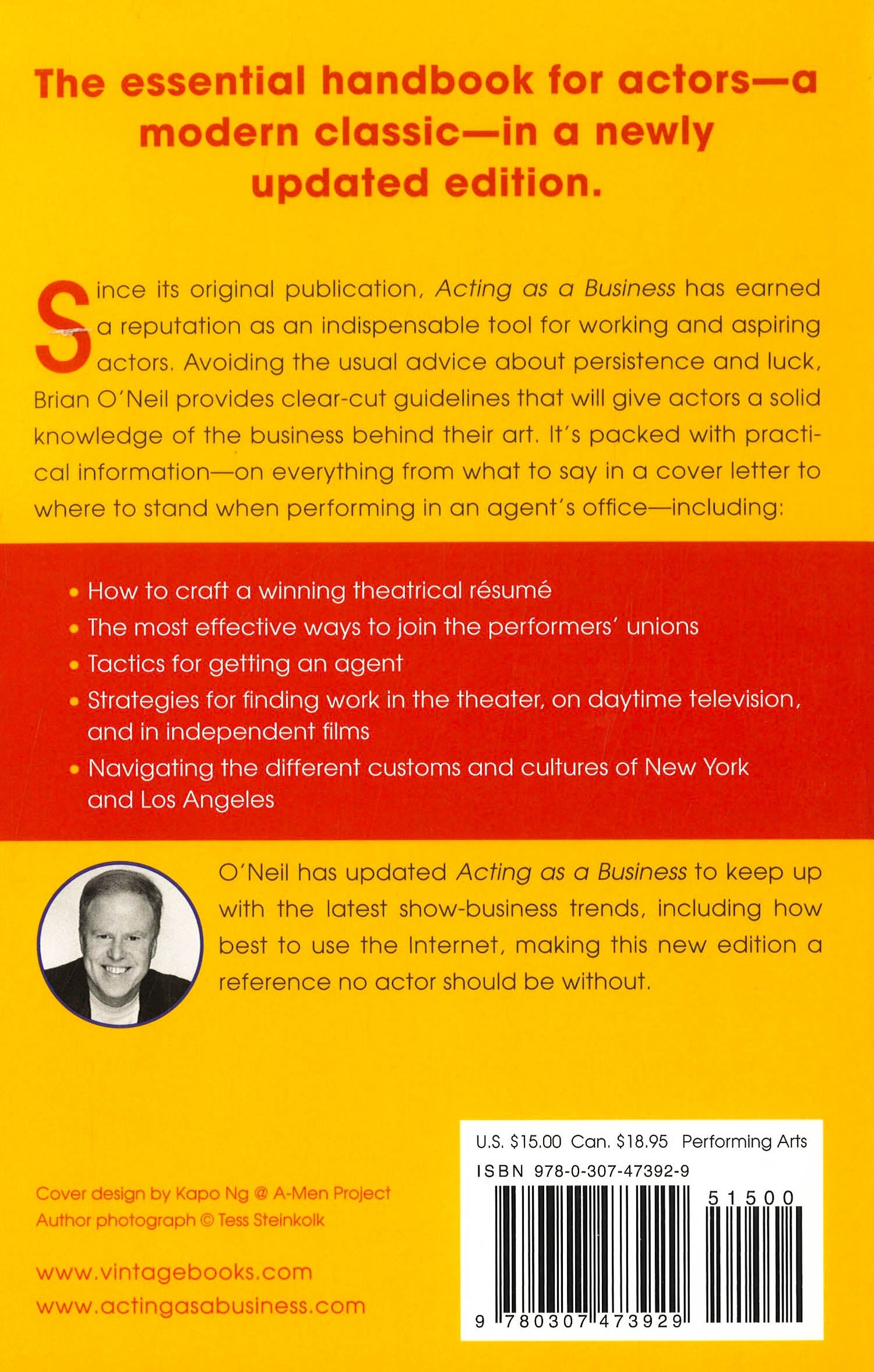 Since its original publication, " Acting as a Business" has earned a reputation as an indispensable tool for working and aspiring actors. Avoiding the usual advice about persistence and luck, Brian O'Neil provides clear-cut guidelines that will give actors a solid knowledge of the business behind their art. It's packed with practical information-on everything from what to say in a cover letter to where to stand when performing in agent's office-including: