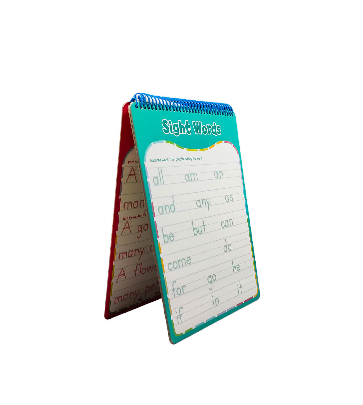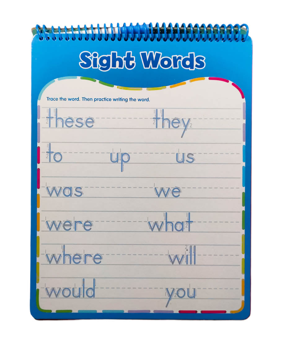 As children begin to build and create sentences, they'll need to know certain words by sight. This write-and-erase spiral bound board set is filled with 6 write-and-erase surfaces perfect for children getting a jump start on reading, writing, and sentence building. Includes a marker. Easy to write, erase, and write again! This write-and-erase set is special because: Topics include: Sight Words, Vocabulary, Sentence Building, Reading, and Writing Great for ages 5 and up 3 two-sided write and erase boards and a marker included Educational focus: sight words, vocabulary, writing skills, early learning, problem solving, vocabulary, motor-skills, alphabet, sentence building, reusable, wipe-off