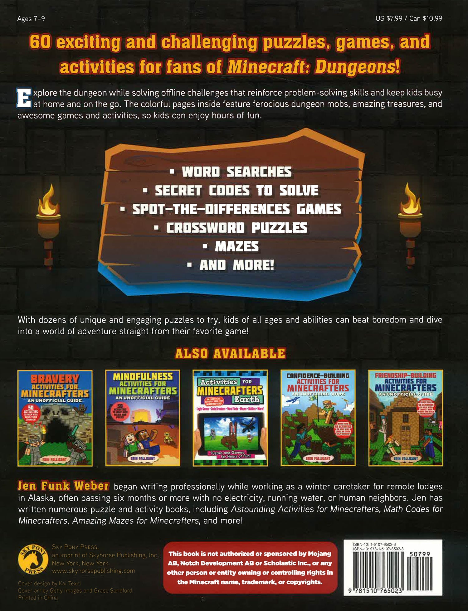 Explore all the best features of Minecraft Dungeon while solving offline challenges that reinforce problem-solving skills and keep kids busy at home and on the go. The colorful activity pages inside feature ferocious dungeon mobs, amazing treasures, and the evil arch-Illager himself, so kids can enjoy hours of fun.