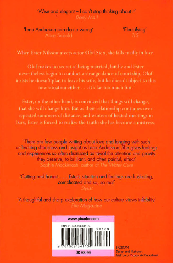 A novel of heartbreak told with intellectual rigor. It gripped me from first page to last. Fantastic!'Alice Sebold, the author of The Lovely BonesWhen Ester Nilsson meets the actor Olof Sten, she falls madly in love.Olof makes no secret of being married, but he and Ester nevertheless start to meet regularly and begin to conduct a strange dance of courtship. Olof insists he doesn't plan to leave his wife, but he doesn't object to this new situation either . . . it's far too much fun.Ester, on the other hand, is convinced that things might change. But as their relationship continues over repeated summers of distance, and winters of heated meetings in bars, she is forced to realize the truth: Ester Nilsson has become a mistress.To read Acts of Infidelity is to dive inside the mind of a brilliant, infuriating friend - Ester's and Olof's entanglements and arguments are the stuff of relationship nightmares. Cutting, often cruel, and written with razor-sharp humour, Lena Andersson's novel is clever, painful, maddening, but most of all perfectly, precisely true.