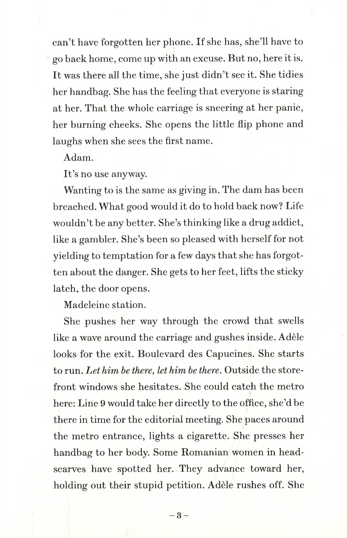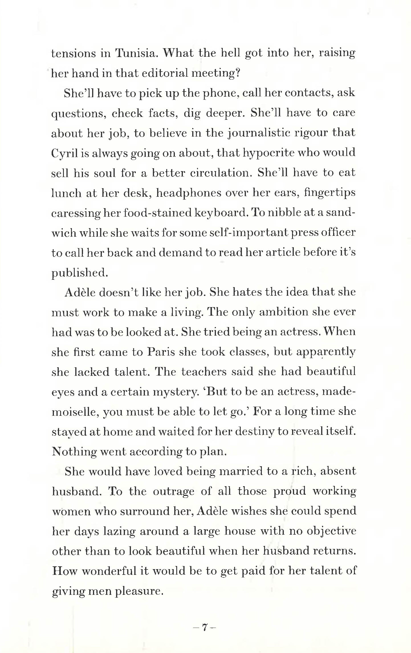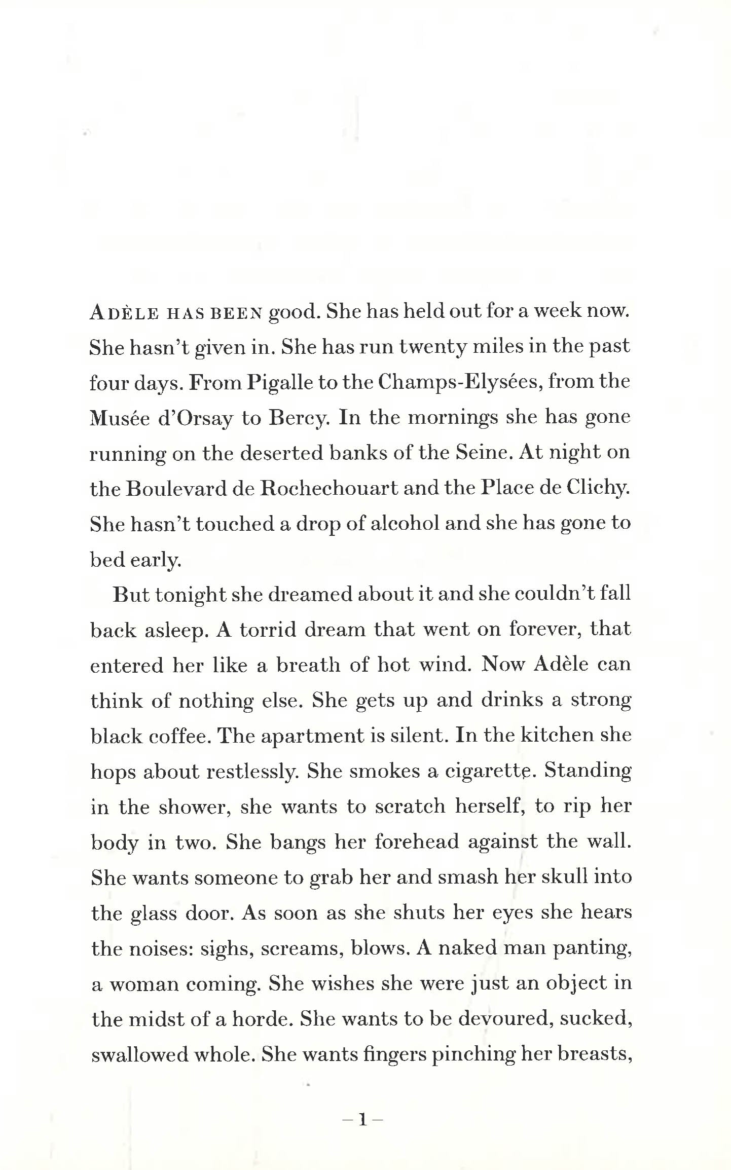 Adèle has a seemingly enviable life. She is a respected journalist, living in a flawless Paris apartment with her surgeon husband and their young son. But beneath the veneer of 'having it all', Adèle is bored. She begins to orchestrate her life around one-night stands and extramarital affairs, arriving late to work and lying to her husband about where she's been, until her compulsions threaten to consume her altogether.