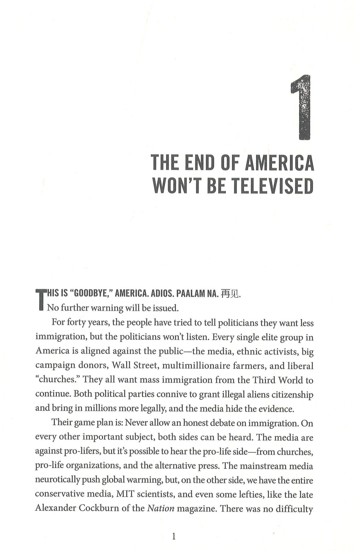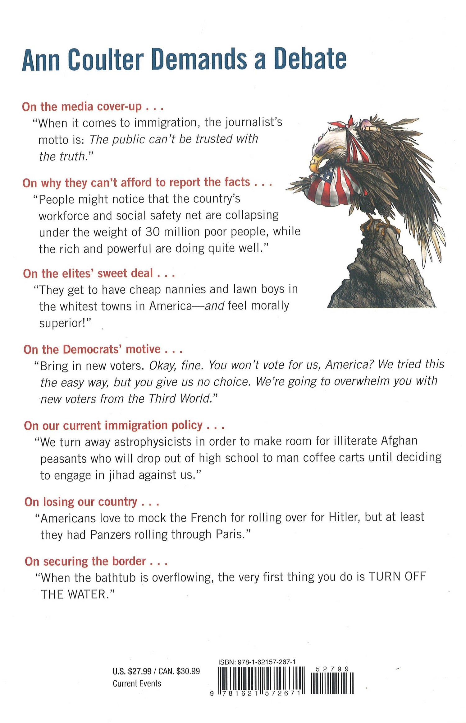 A New York Times Bestseller! Ann Coulter is back, more fearless than ever. In Adios, America she touches the third rail in American politics, attacking the immigration issue head-on and flying in the face of La Raza, the Democrats, a media determined to cover up immigrants' crimes, churches that get paid by the government for their "charity," and greedy Republican businessmen and campaign consultants--all of whom are profiting handsomely from mass immigration that's tearing the country apart. Applying her trademark biting humor to the disaster that is U.S. immigration policy, Coulter proves that immigration is the most important issue facing America today.