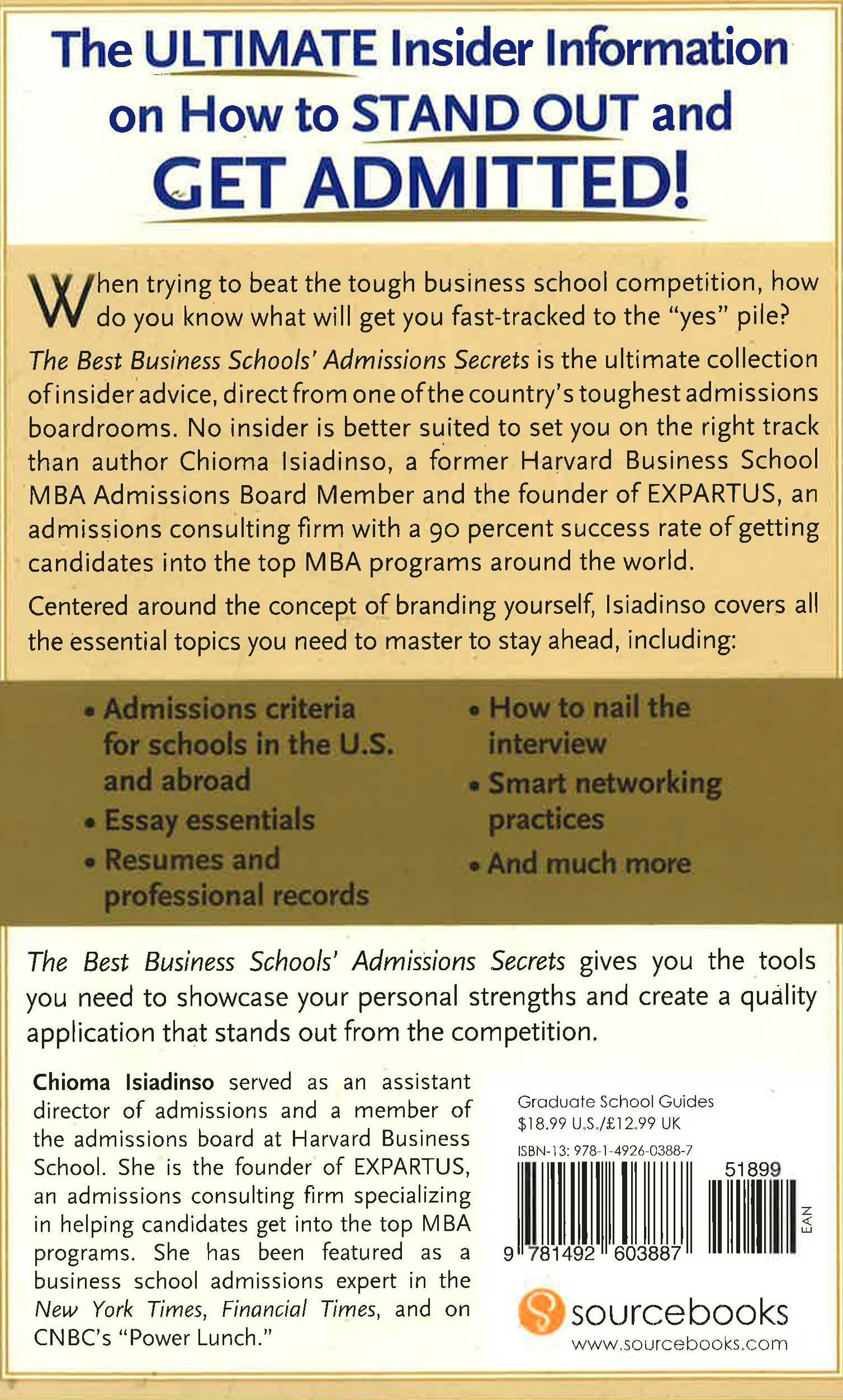 Top MBA programs reject more than 80 percent of their applicants, but author Chioma Isiadinso's admissions consulting firm has successfully guided 90 percent of her students into the best business schools around the world. As a former Admissions Board Member, Isiadinso offers insider tips and strategies to help applicants get into the school of their choice by building and promoting their personal brand.
