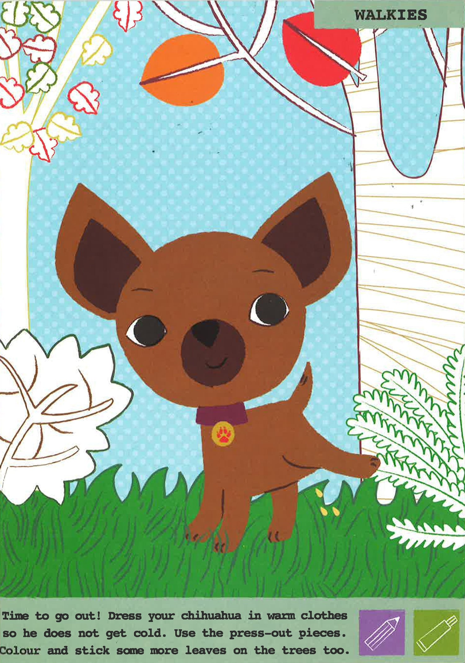 He's a cute little dog who's looking for a new friend to look after him. Children can start off by giving him a name, some toys to play with and clothes to keep him warm. Then they'll see where their adventures take them! Including stickers, colouring in and press-out pieces to make a collage. Fold out the cover flaps to see their new pet, his basket and everything he needs to feel at home.