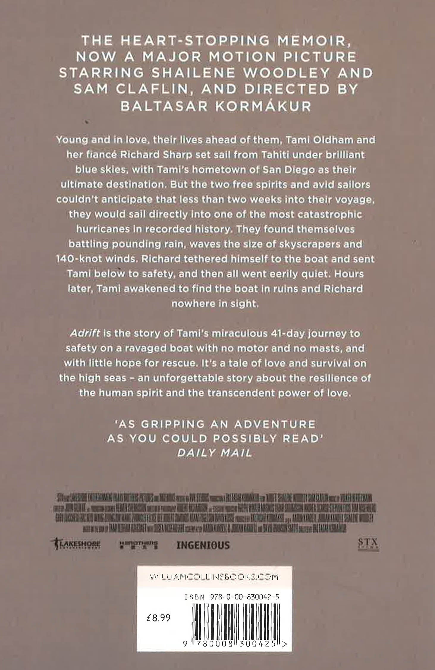 THE HEART-STOPPING MEMOIR, NOW A MAJOR MOTION PICTURE STARRING SHAILENE WOODLEY AND SAM CLAFLIN, AND DIRECTED BY BALTASAR KORMAKUR (EVEREST) A compelling, at times devastating, ultimately inspiring account of how much can go wrong on the ocean and how, miraculously, one woman conquered her own fears. `An inspirational and empowering read' Shailene Woodley Young and in love, their lives ahead of them, Tami Oldham and her fiance Richard Sharp set sail from Tahiti under brilliant blue skies, with Tami's hometown of San Diego as their ultimate destination. But the two free spirits and avid sailors couldn't anticipate that less than two weeks into their voyage, they would sail directly into one of the most catastrophic hurricanes in recorded history. They found themselves battling pounding rain, waves the size of skyscrapers, and 140 knot winds. Richard tethered himself to the boat and sent Tami below to safety, and then all went eerily quiet. Hours later, Tami awakened to find the boat in ruins, and Richard nowhere in sight. Adrift is the story of Tami's miraculous forty-one-day journey to safety on a ravaged boat with no motor and no masts, and with little hope for rescue. It's a tale of love and survival on the high seas- an unforgettable story about resilience of the human spirit, and the transcendent power of love. Previously published as Red Sky in Mourning