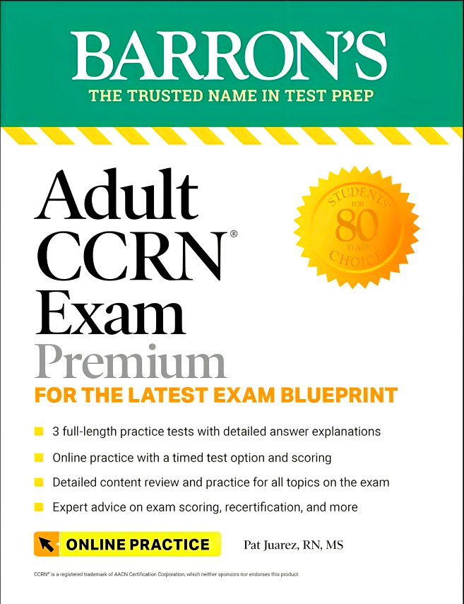 Barron’s Adult CCRN Exam Premium study guide provides all of the key concepts you need to pass the Adult CCRN exam, with detailed review and full-length practice tests plus online practice.