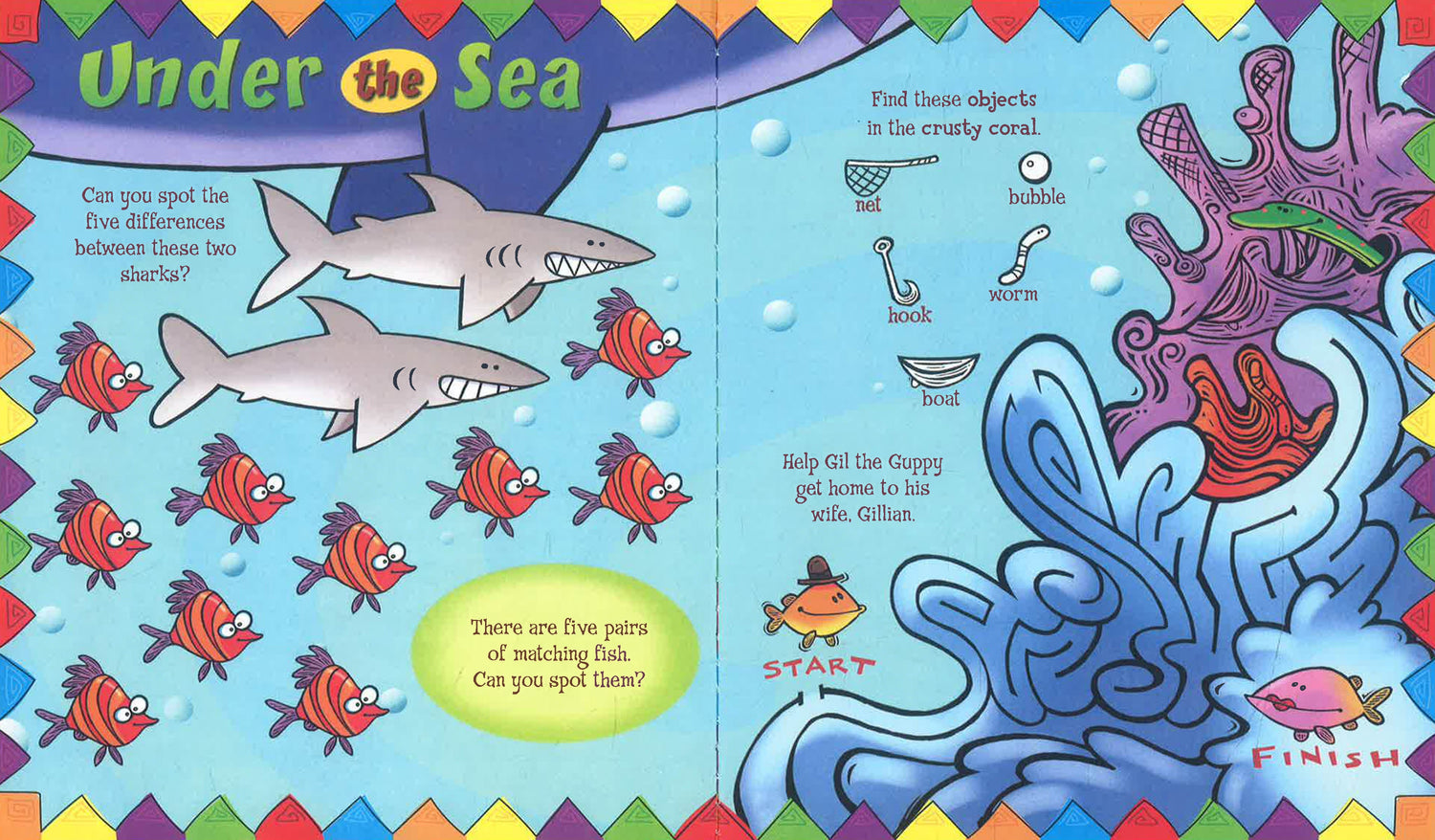 A collection of adventurous puzzles and activities just for you! This book is filled with more than 15 doodles, mazes, puzzles, and more.