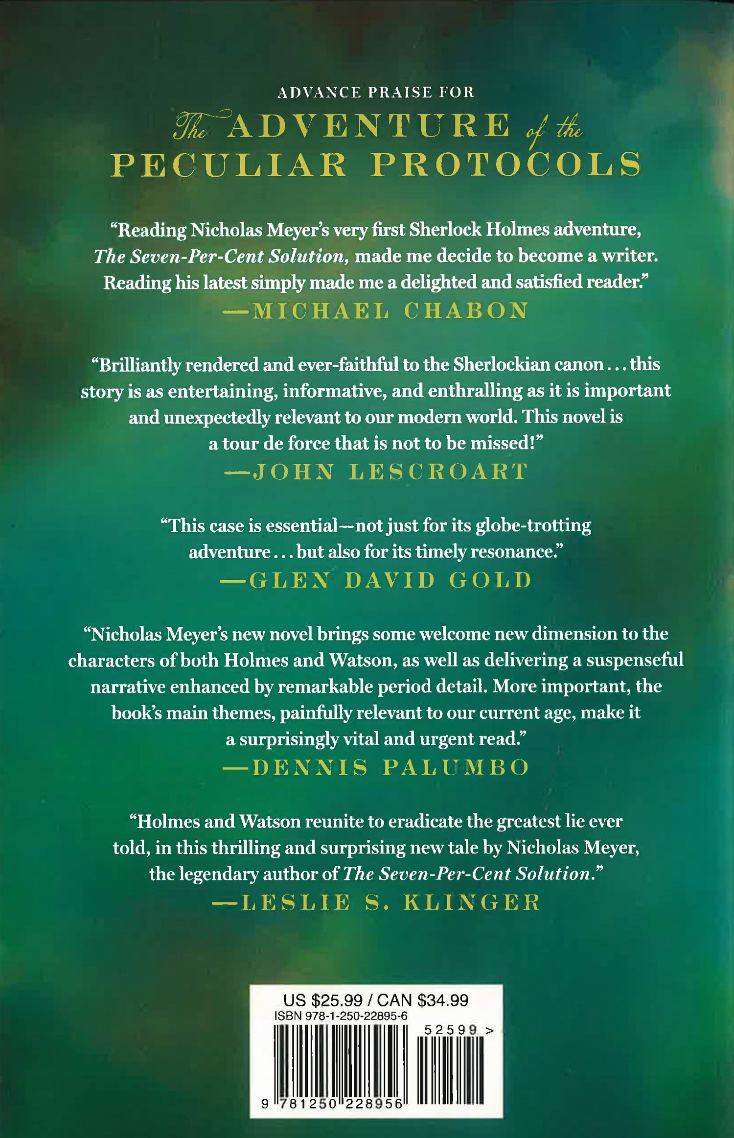 With the international bestseller The Seven-Per-Cent Solution Nicholas Meyer brought to light a previously unpublished case of Sherlock Holmes, as recorded by Dr. John H. Watson. Now Meyer returns with a shocking discovery - an unknown case drawn from a recently unearthed Watson journal. January 1905: Holmes and Watson are summoned by Holmes' brother Mycroft to undertake a clandestine investigation. An agent of the British Secret Service has been found floating in the Thames, carrying a manuscript smuggled into England at the cost of her life. The pages purport to be the minutes of a meeting of a secret group intent on nothing less than taking over the world: The Protocols of the Elders of Zion. A seeming forgery, Holmes and Watson are sent to determine its origins, and what the perpetrators of this hoax (if it IS a hoax), are trying to accomplish. And why they are trying so hard to keep their handiwork out of the hands of the British Secret Service. In an adventure that takes the famed duo - in the company of a bewitching woman - aboard the Orient Express from Paris into the heart of Tsarist Russia, Holmes and Watson attempt to trace the genesis of this explosive document. On their heels are desperate men of unknown allegiance, determined to prevent them achieving their task. And what they uncover is a puzzle that only the superior intellect of Sherlock Holmes has any hope of untangling.