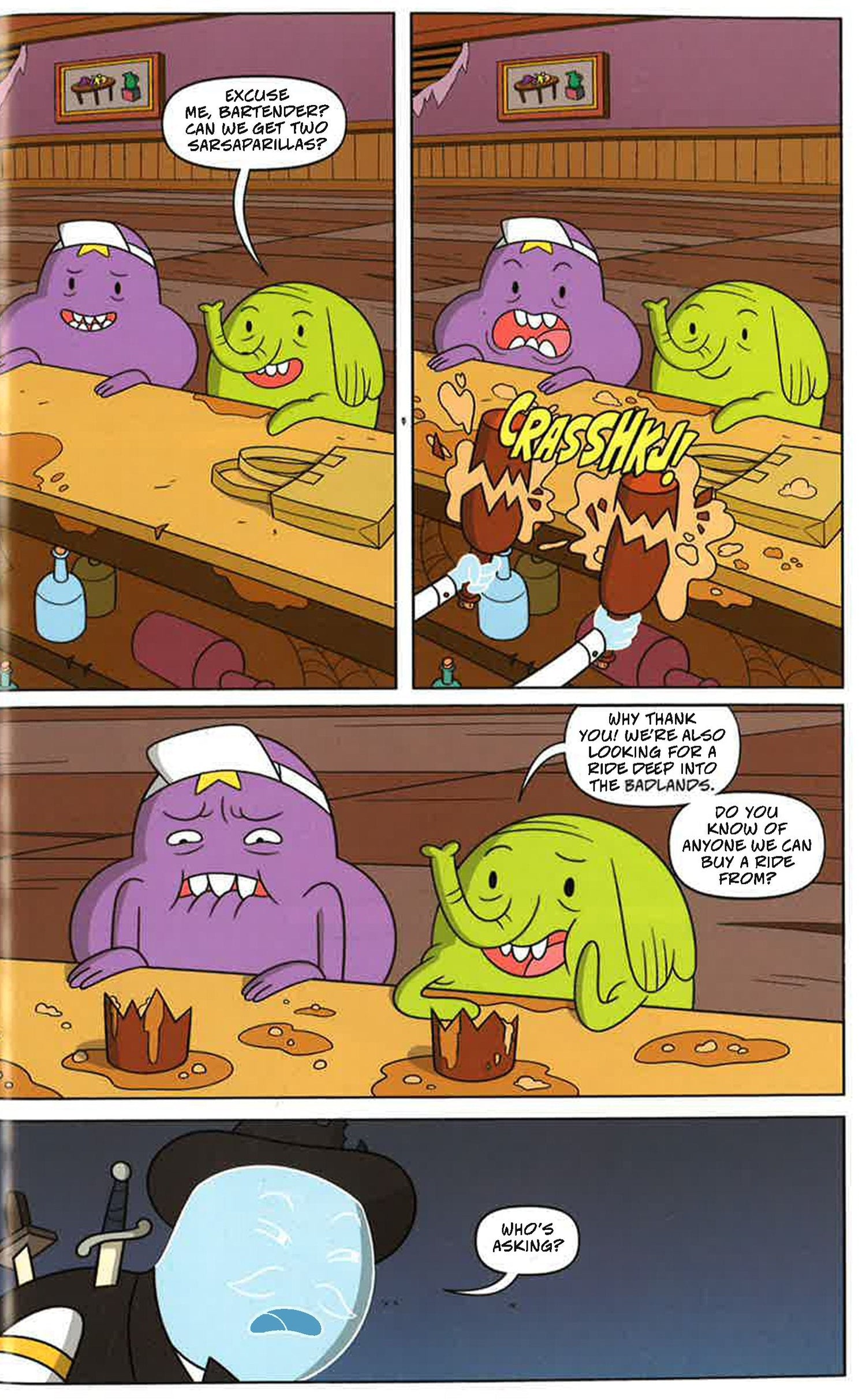 LSP and Tree Trunks go on a treasure hunt! Good thing Finn and Jake are there to save the day . . . or are they? It's the most important moment of Lumpy Space Princess's life, and it's all going to slip through her fingers if she doesn't get help. Tree Trunks comes out of her mystery filled retirement for one last job as she agrees to help LSP on a wild west treasure hunt. Finn and Jake secretly follow along to protect their friends but discover that LSP knows more than she is letting on about this particular treasure . . . Josh Trujillo (Love Machines) and Zachary Sterling (Adventure Time) take readers on a wild journey in Adventure Time: Brain Robbers.