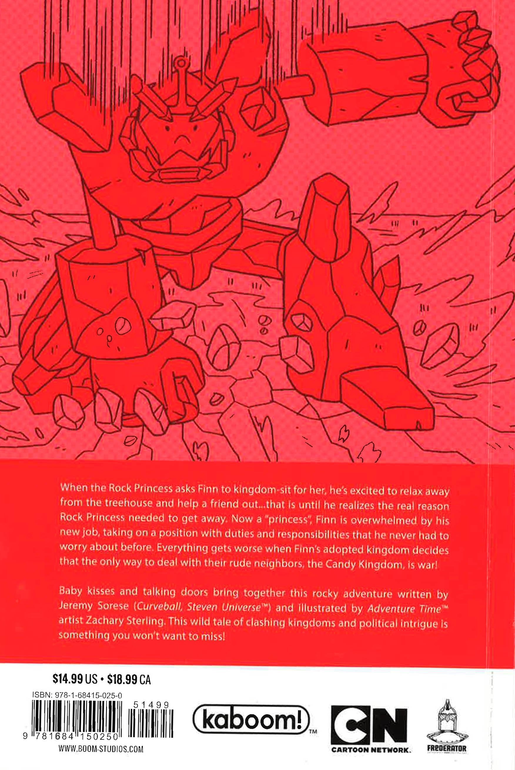 Finn temporarily becomes Princess of the Rock Kingdom as a favor for Rock Princess, inadvertently starting a war. When Finn is asked to kingdom-sit for a neighboring Rock Princess, he's excited to take a break from his responsibilities back home, until the Underground Kingdom turns to him with pressing matters. Thrown into the role of 'princess', Finn's adopted kingdom decides to declare war on Princess Bubblegum! Rocks and a hard place make up this all-new Adventure Time tale written by Jeremy Sorese (Curveball, Steven Universe) and illustrated by Adventure Time veteran Zachary Sterling. Don't miss out on this action packed journey based on the award-winning show from Cartoon Network!