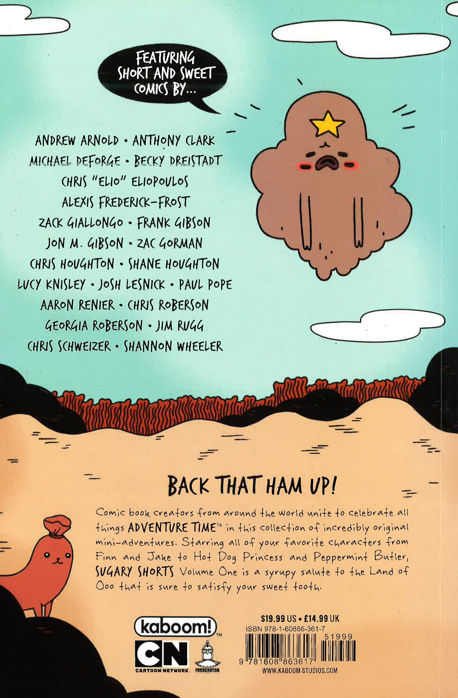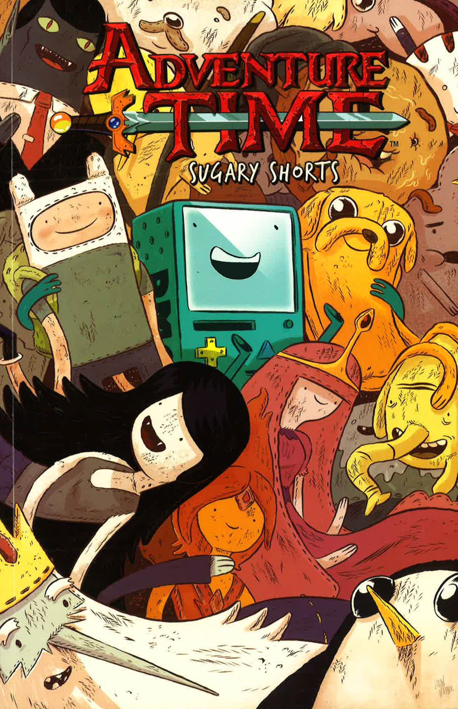 The sugary short stories from the all-ages smash hit are finally collected in this affordable soft cover! Comic creators from around the world unite to celebrate all things ADVENTURE TIME in this collection of incredibly original mini-adventures. Starring all of your favorite characters from Finn and Jake to Hot Dog Princess and Peppermint Butler, SUGARY SHORTS Volume One is a syrupy salute to the Land of Ooo that is sure to satisfy your sweet tooth.