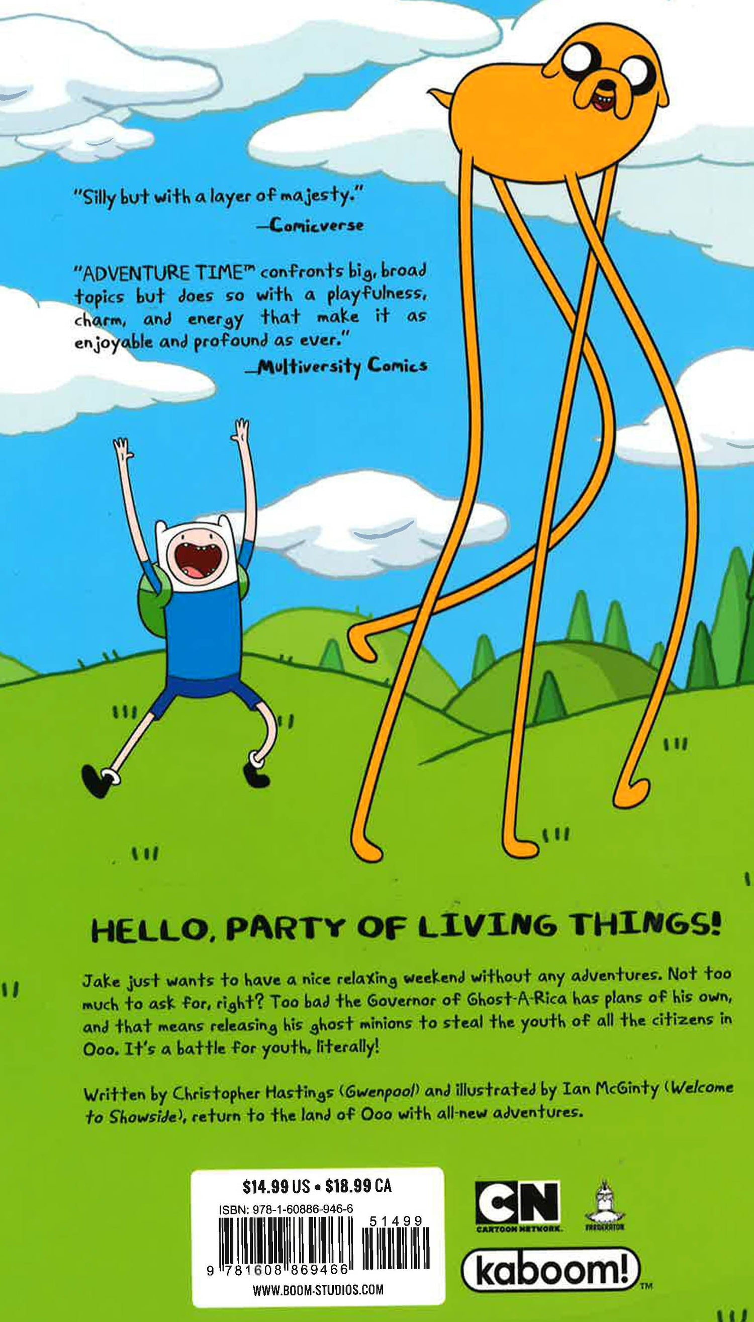 Finn and Jake have to save all of Ooo from a life-sucking ghost! HELLO, PARTY OF LIVING THINGS! Jake just wants to have a nice relaxing weekend without any adventures. Not too much to ask for, right? Too bad the Governor of Ghost-A-Rica has plans of his own and that means releasing his ghost minions to steal the youth of all the citizens in Ooo. It's a battle for youth, literally! Written by Christopher Hastings (Gwenpool) and illustrated by Ian McGinty (Bravest Warriors), return to the land of Ooo with all new adventures in Adventure Time Volume 11. Collects issues #50-54.